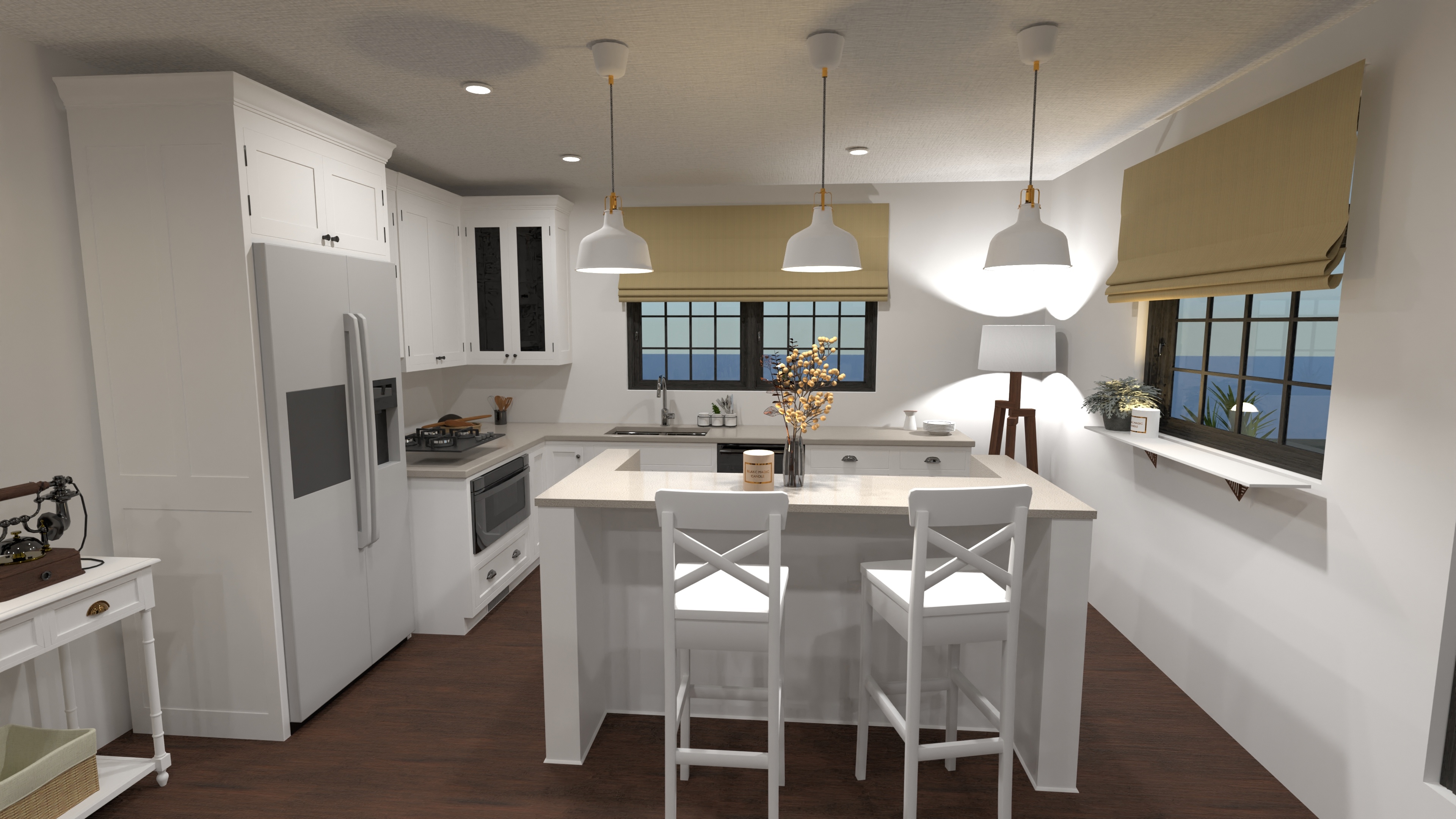 Three generous bedrooms line the quiet wing, anchored by an elegant double-vanity bath. Built-in wardrobes, a walk-through hall closet, and plenty of cabinet space keep everyday life organized while wide sliders invite easy indoor-outdoor entertaining. Perfect for young families, creative couples, or downsizers who want personality without stairs.