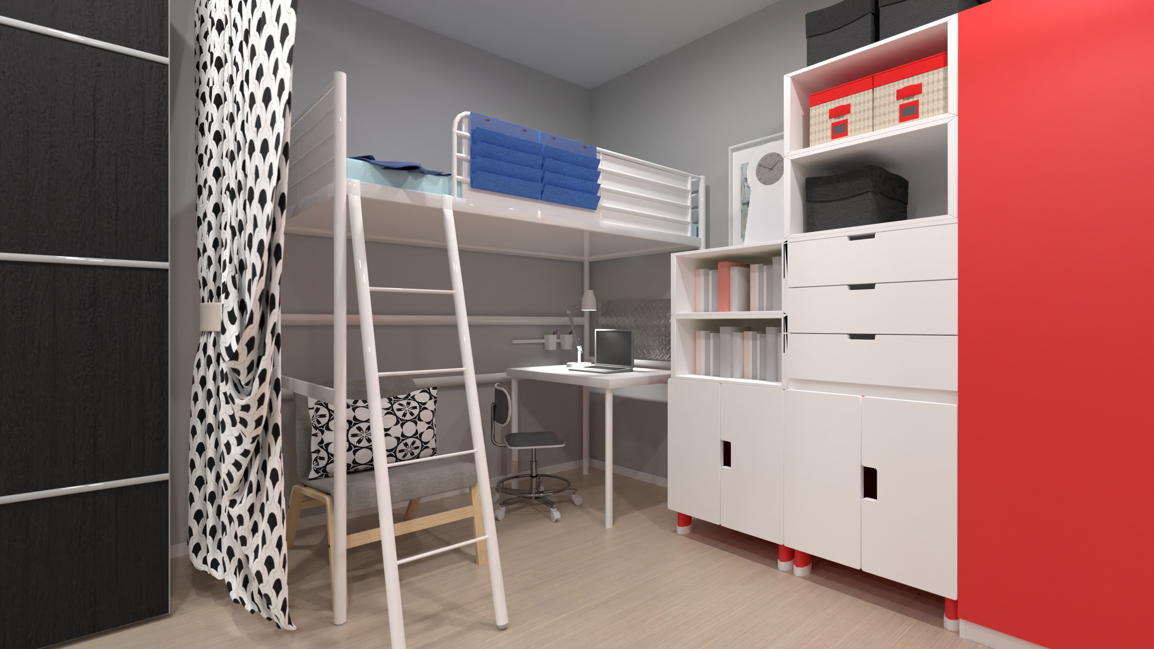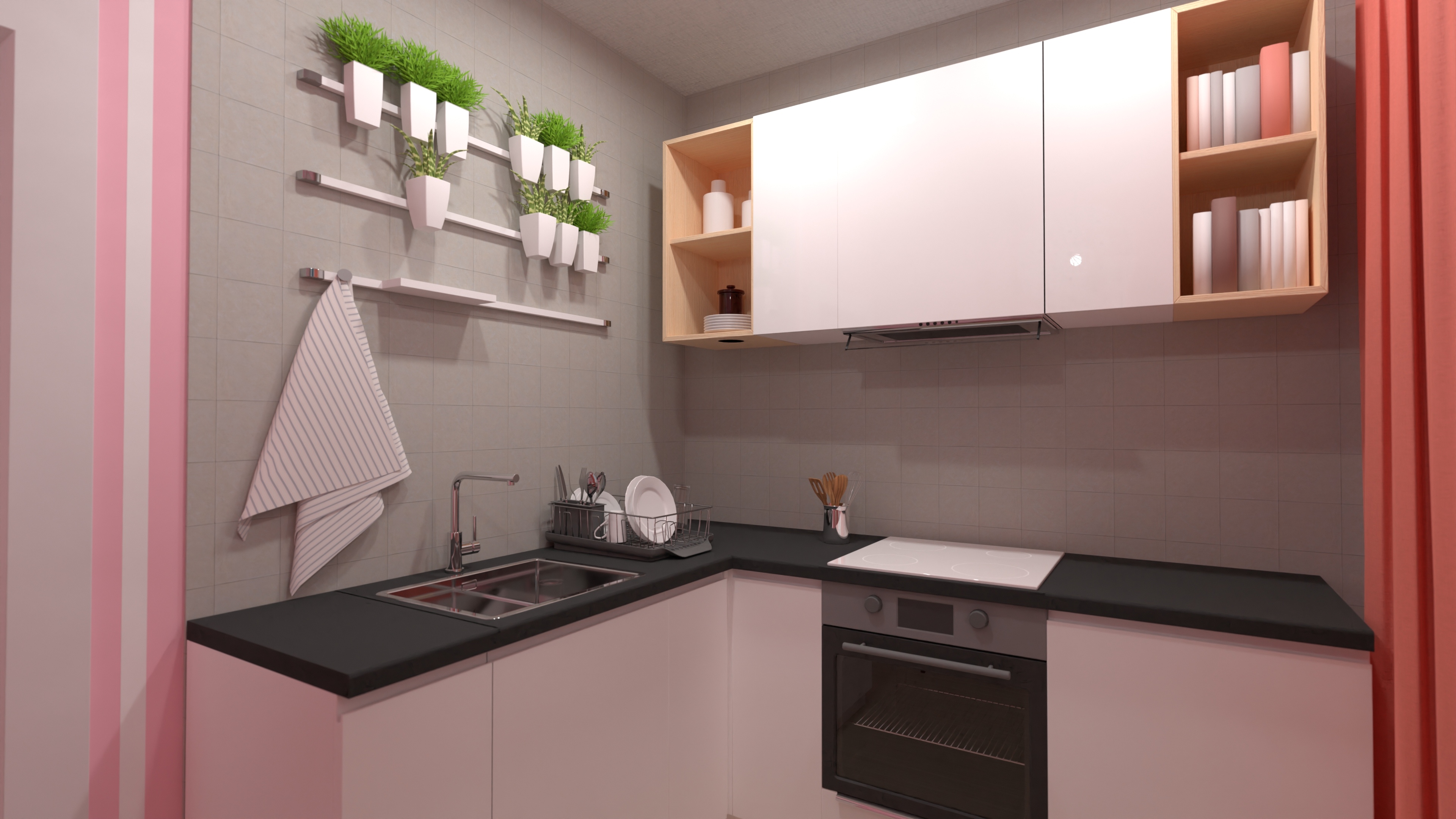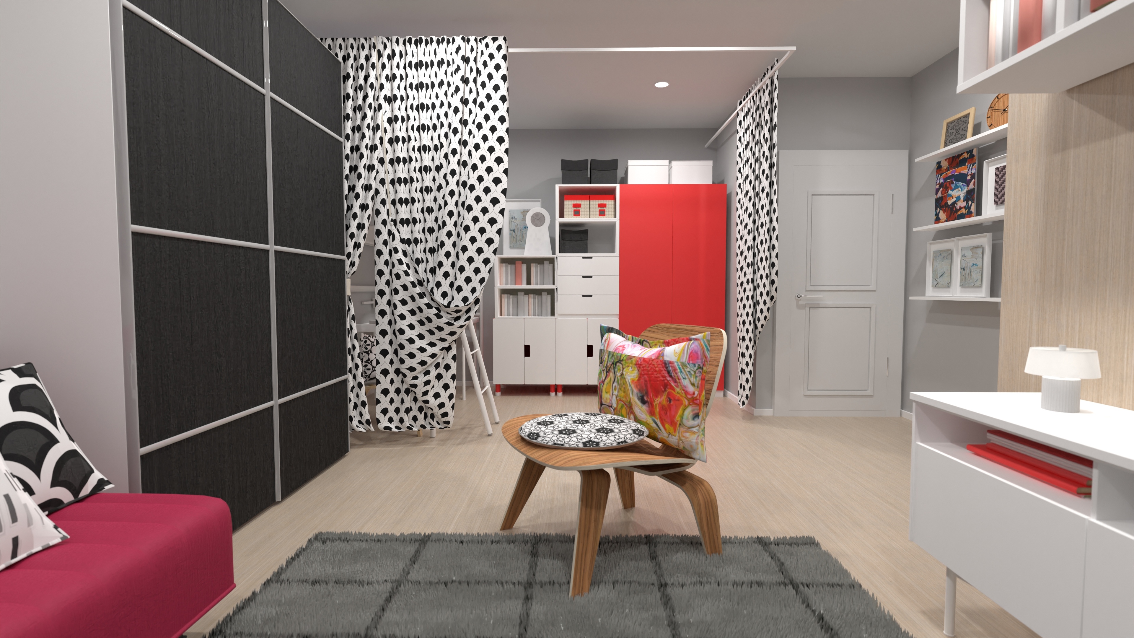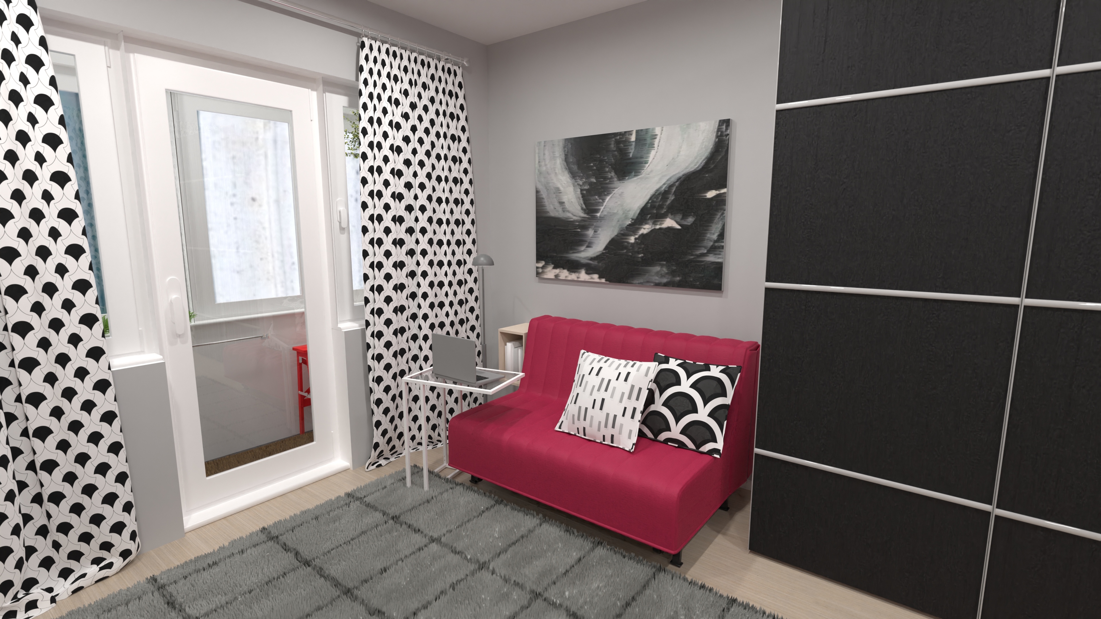 Spacious Studio Apartment Plan with Balcony and Kitchen