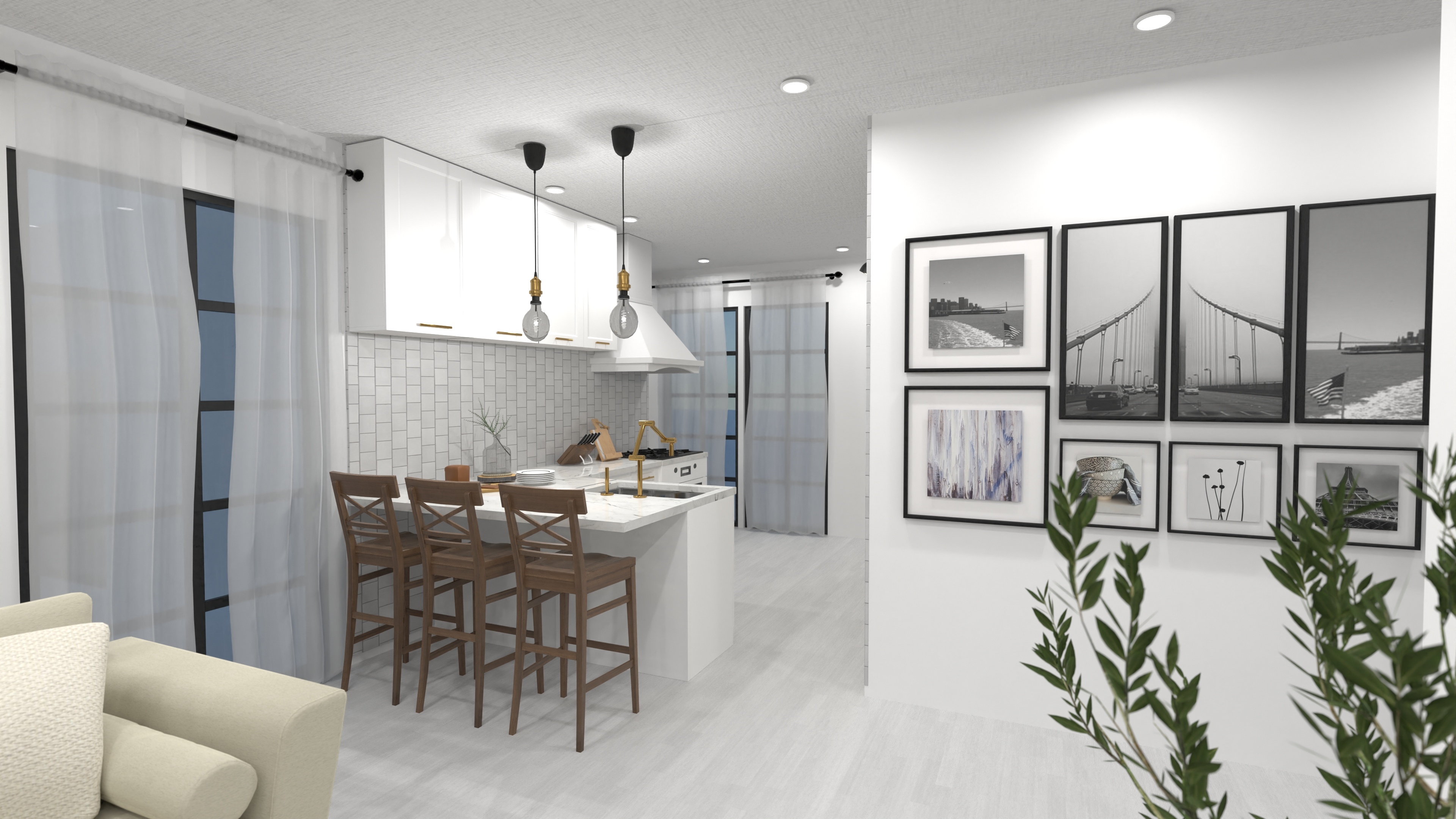 Great-Room & Kitchen: 377 sq ft, ceiling 9′