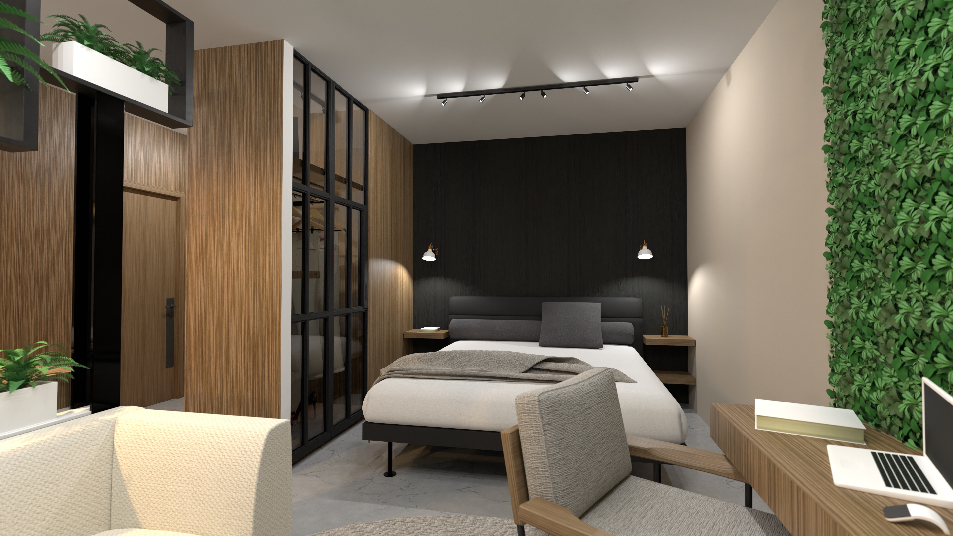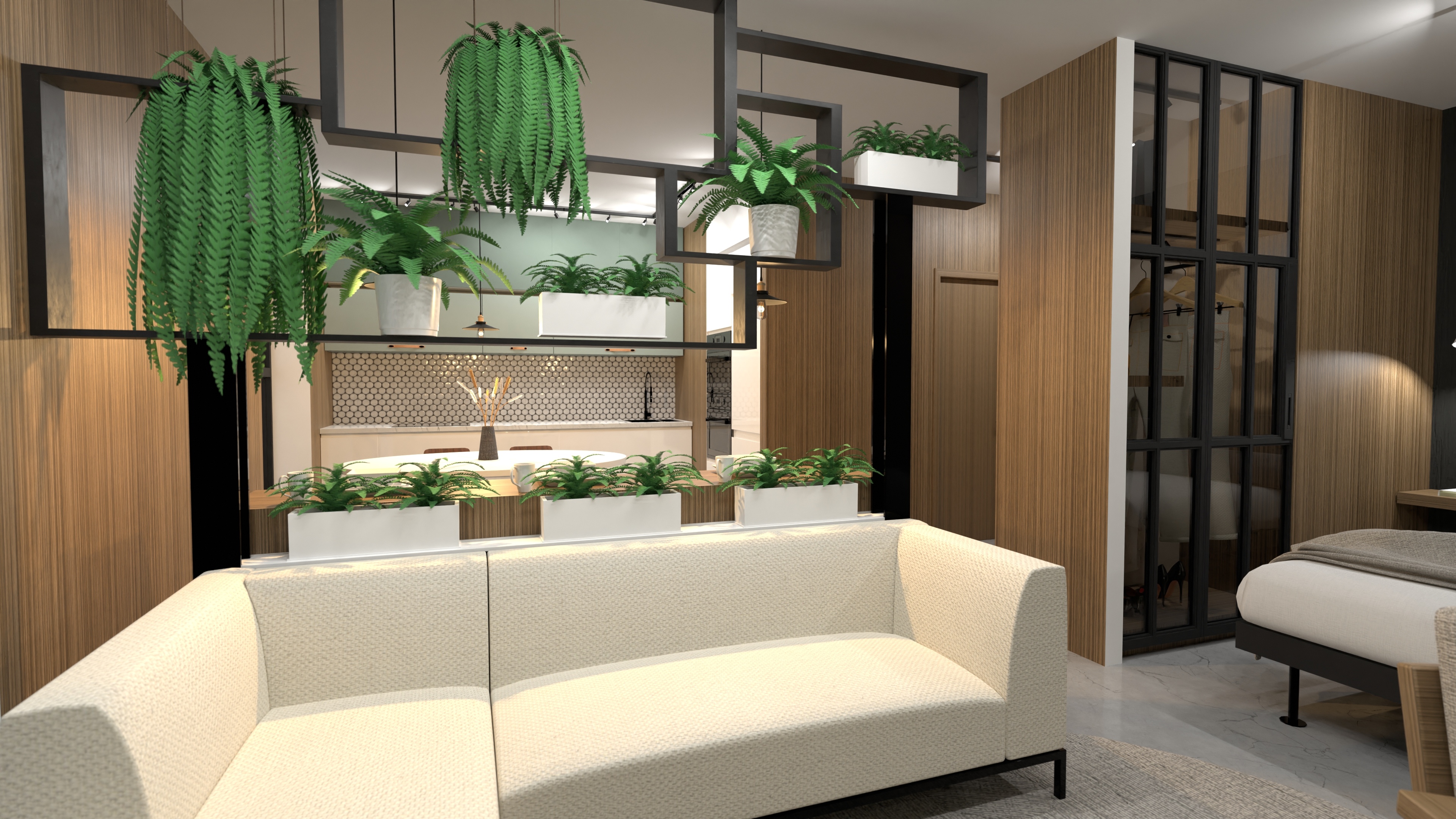 Large windows flood the space with natural light, accentuating modern finishes and flexible living/sleeping zones—ideal for work or relaxation. Thoughtfully designed storage and a sleek layout make everyday living effortless.