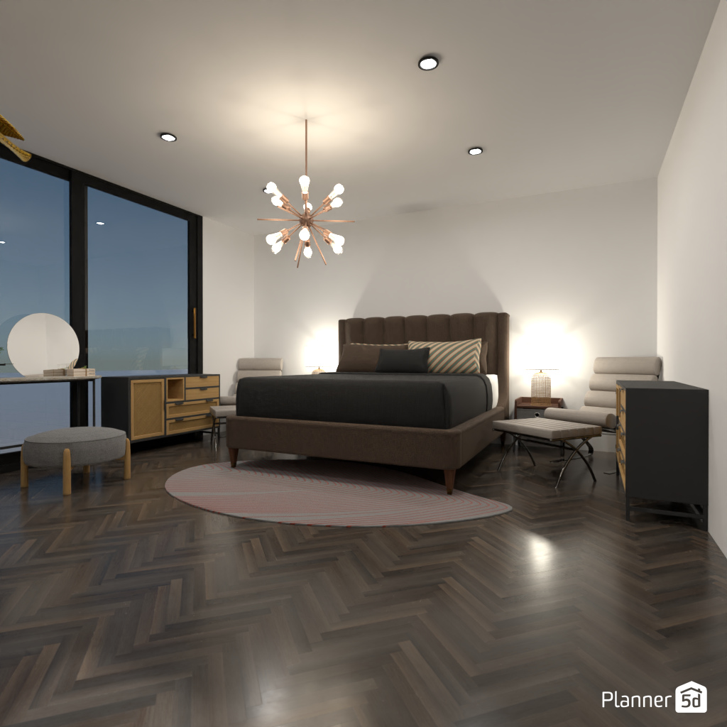 Progetta una lussuosa e accogliente stanza d'albergo.