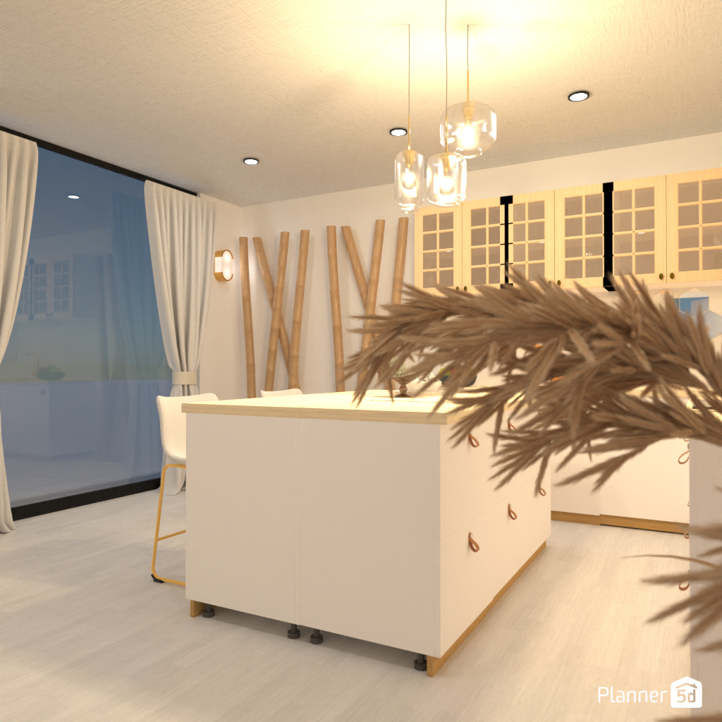 Progettate l'interno di una cucina moderna nei toni del marrone.
