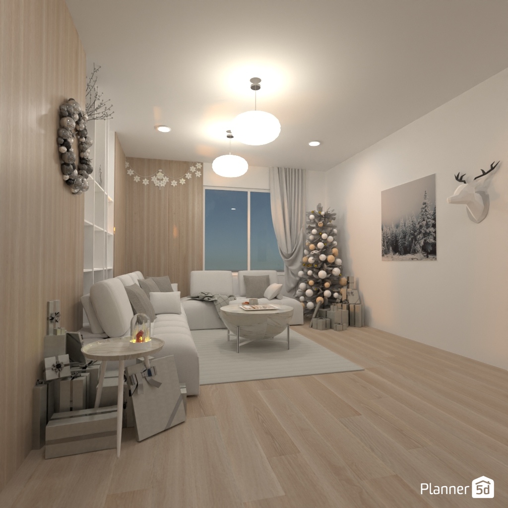 Progetta un soggiorno con decorazioni natalizie.