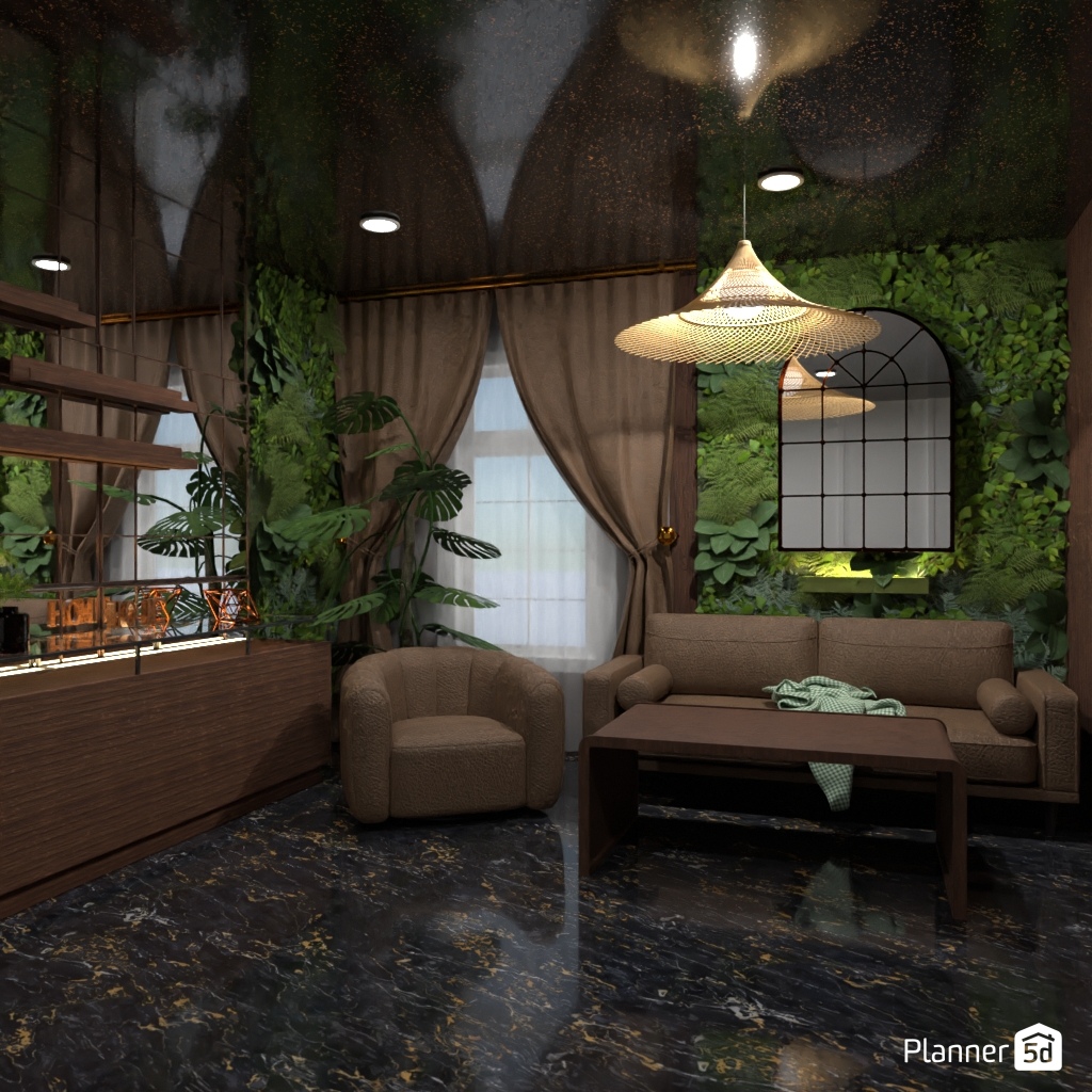 Progettate il soggiorno con un muro a specchio come accento.