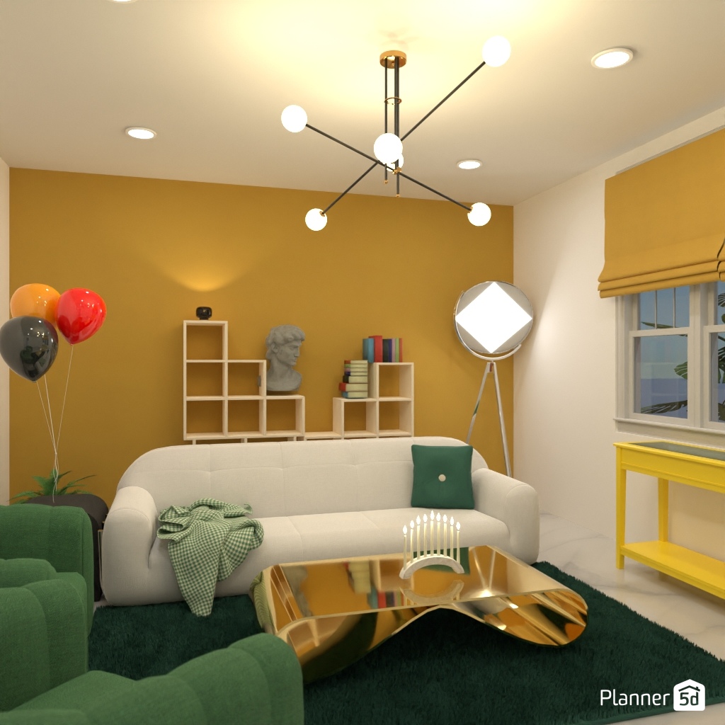 Progetta l'interno di un soggiorno con colori pastello.