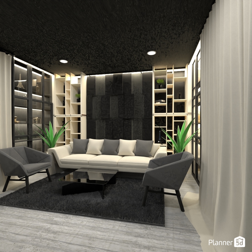 Progetta gli interni di un soggiorno con diverse forme geometriche.