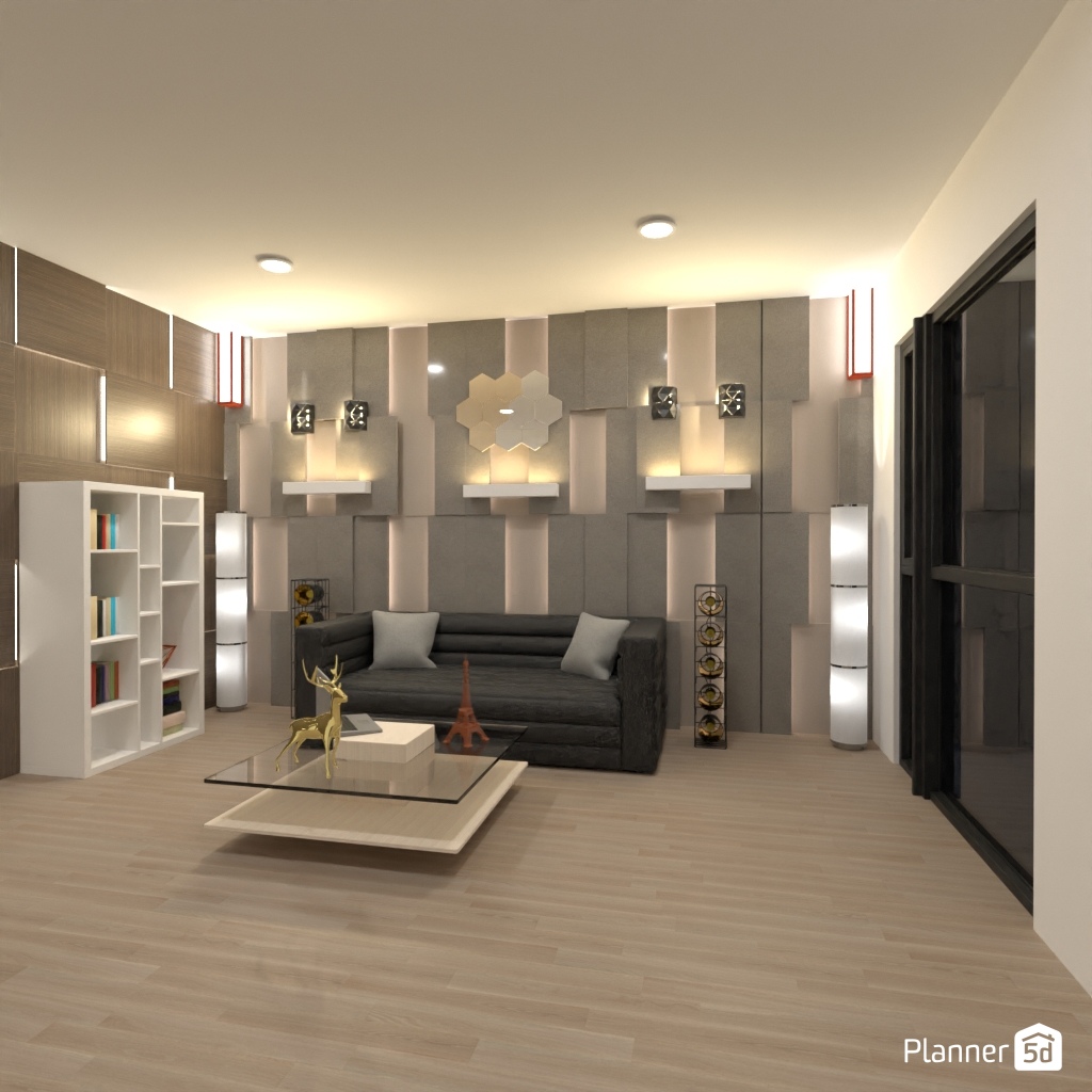 Progetta gli interni di un soggiorno con diverse forme geometriche.