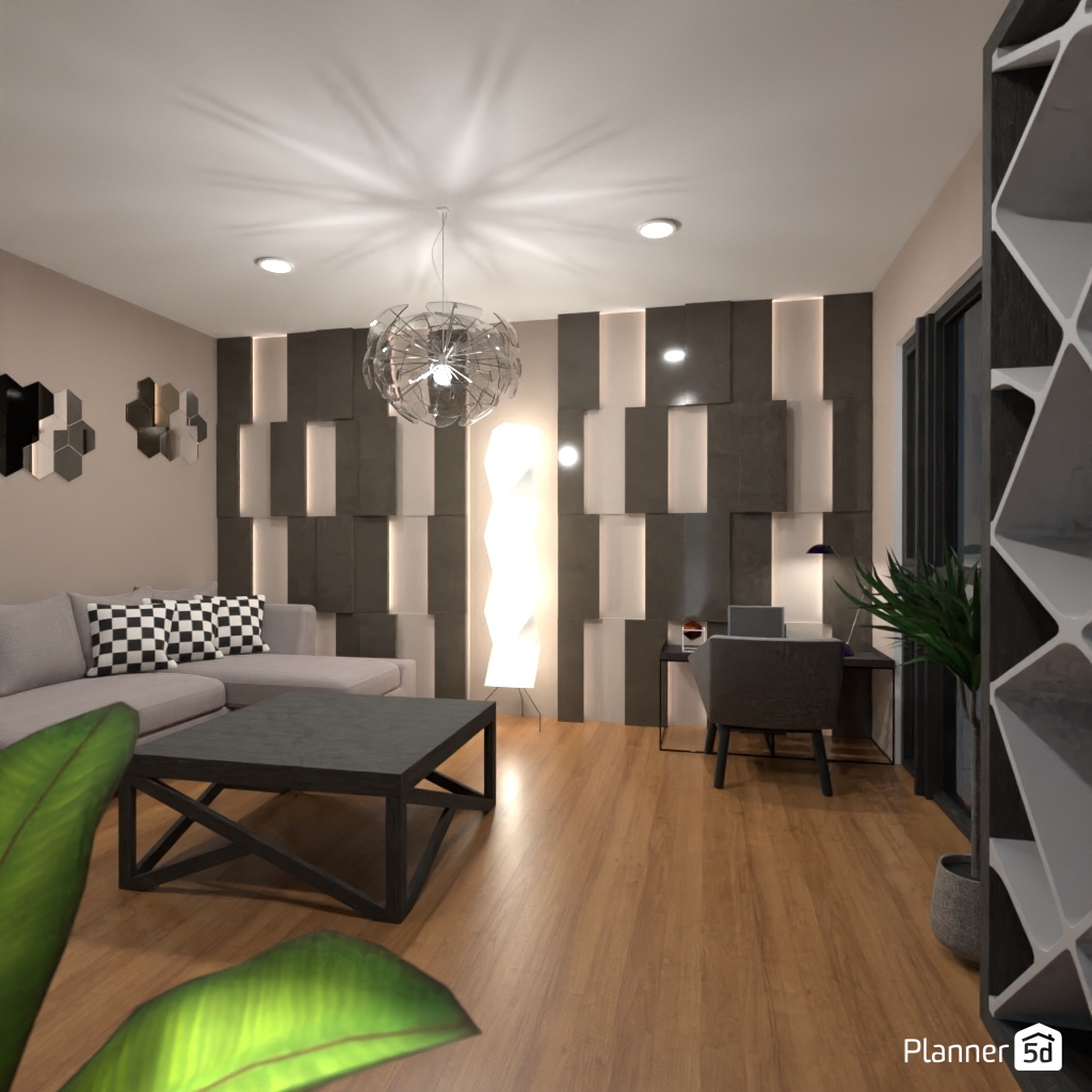 Progetta gli interni di un soggiorno con diverse forme geometriche.