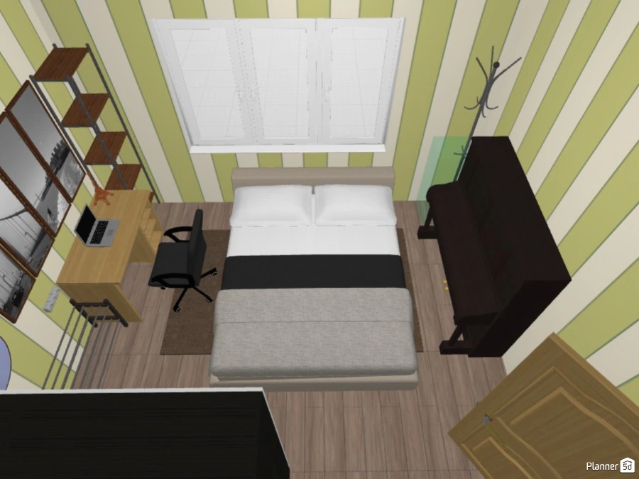 Children until adults will definitely love this bedroom. There is one piece of furniture that is different from usual, in this bedroom, there is an upright piano which can add an elegant and artistic impression.