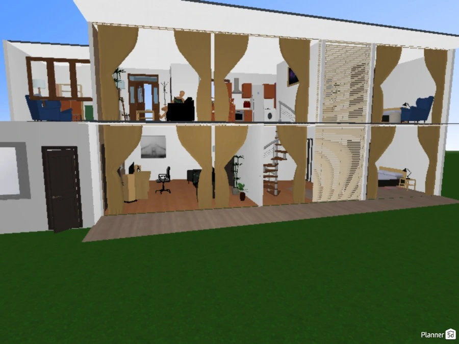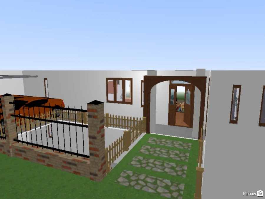 Casa pablo vista 2d y 3d desde el patio y fachada