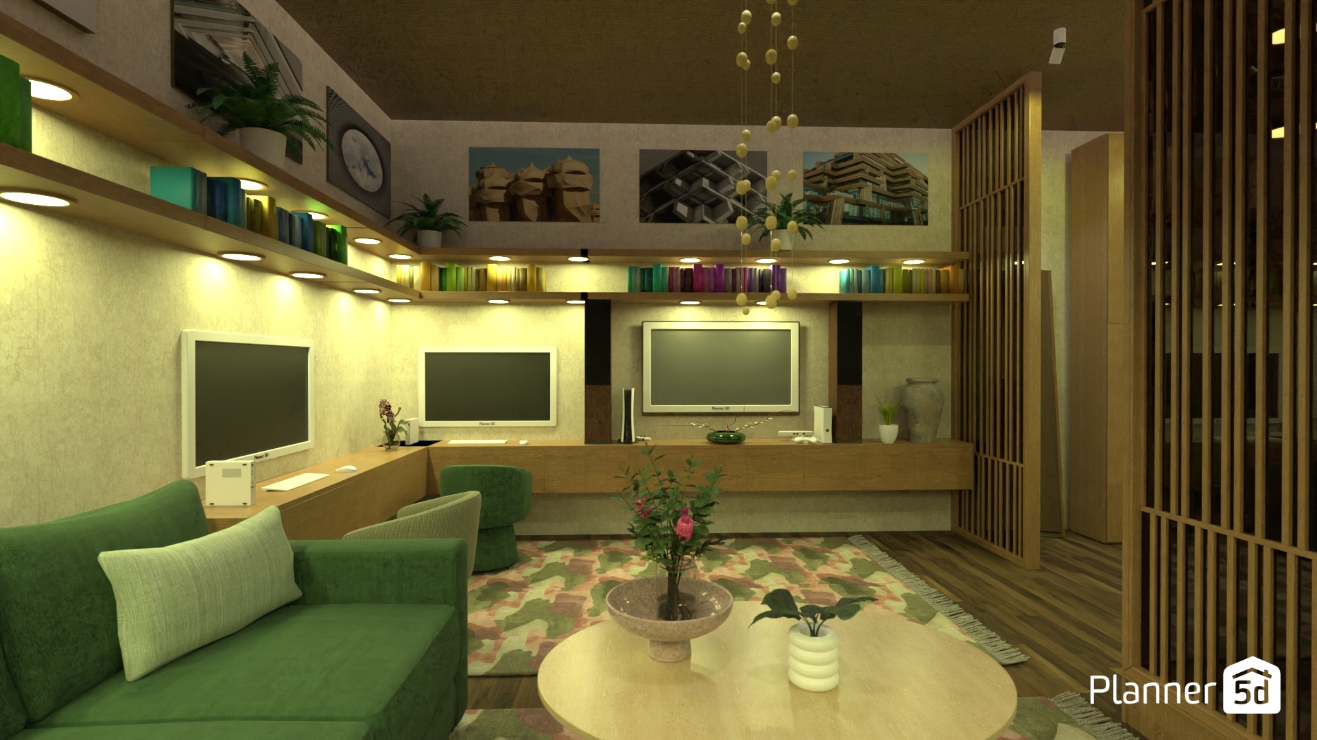 detalle de zona de trabajo en espacio hibrido de estudio. Espacio funcional integrado en estudio con muebles y decoración contemporánea con acentos naturales