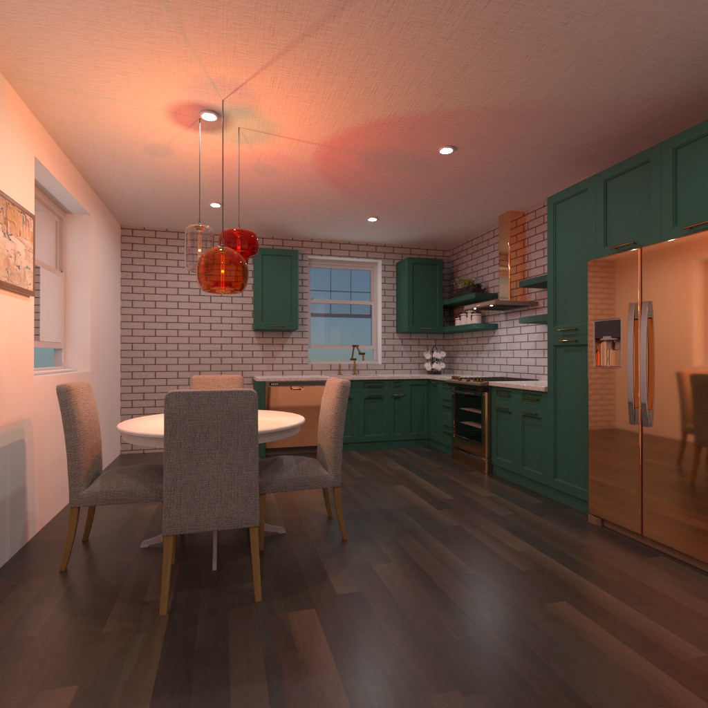 Suprojektuok ryškesnių spalvų virtuvę su valgomuoju.