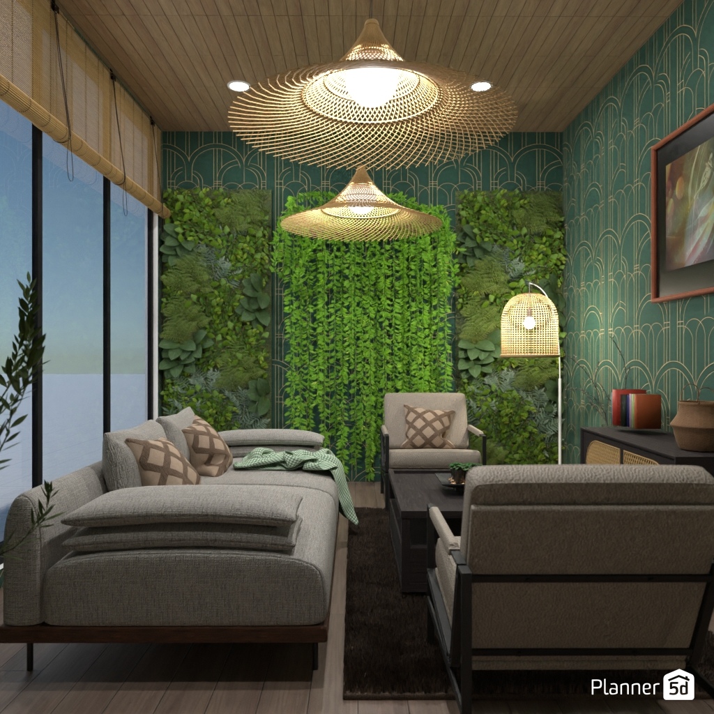 Suprojektuok svetainės interjerą su natūraliomis tekstūromis ir spalvomis.