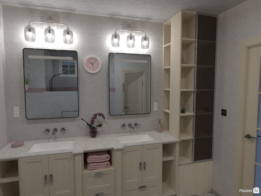 Master bath with dual basins, freestanding bathtub, and walk-in shower.