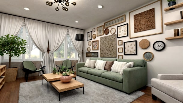 Aplique cores, padrões e materiais personalizados a móveis, paredes e pisos para combinar com seu estilo de design de interiores.