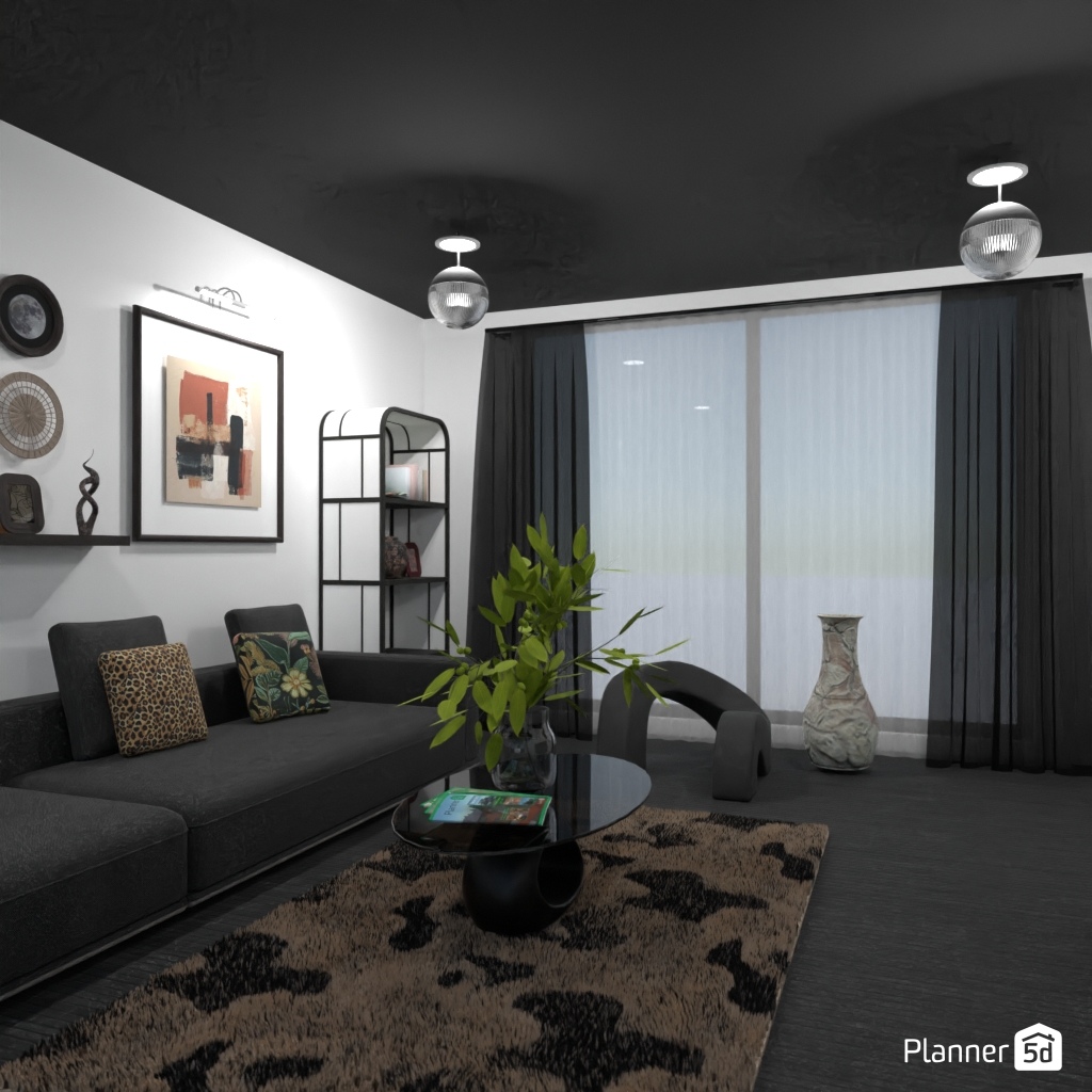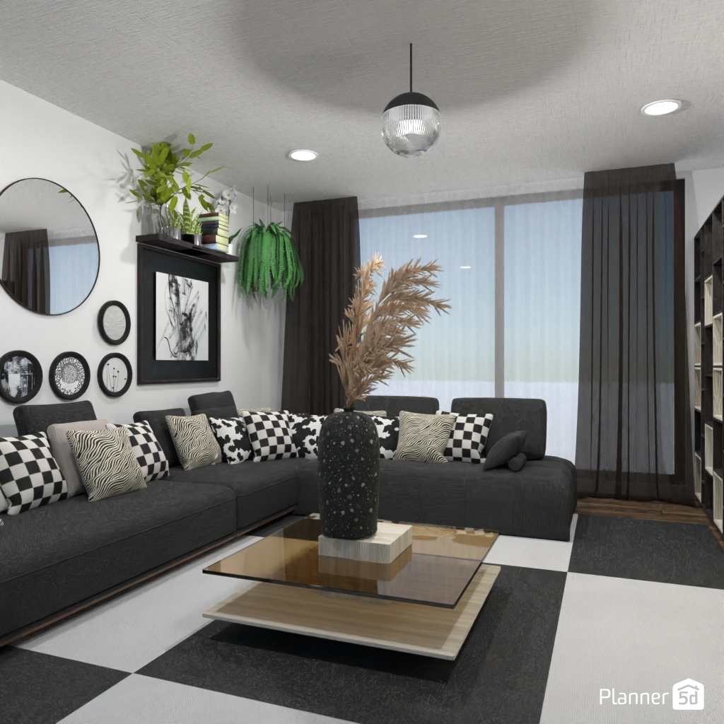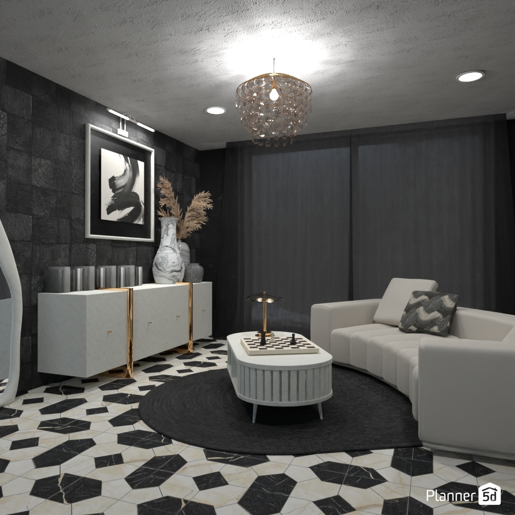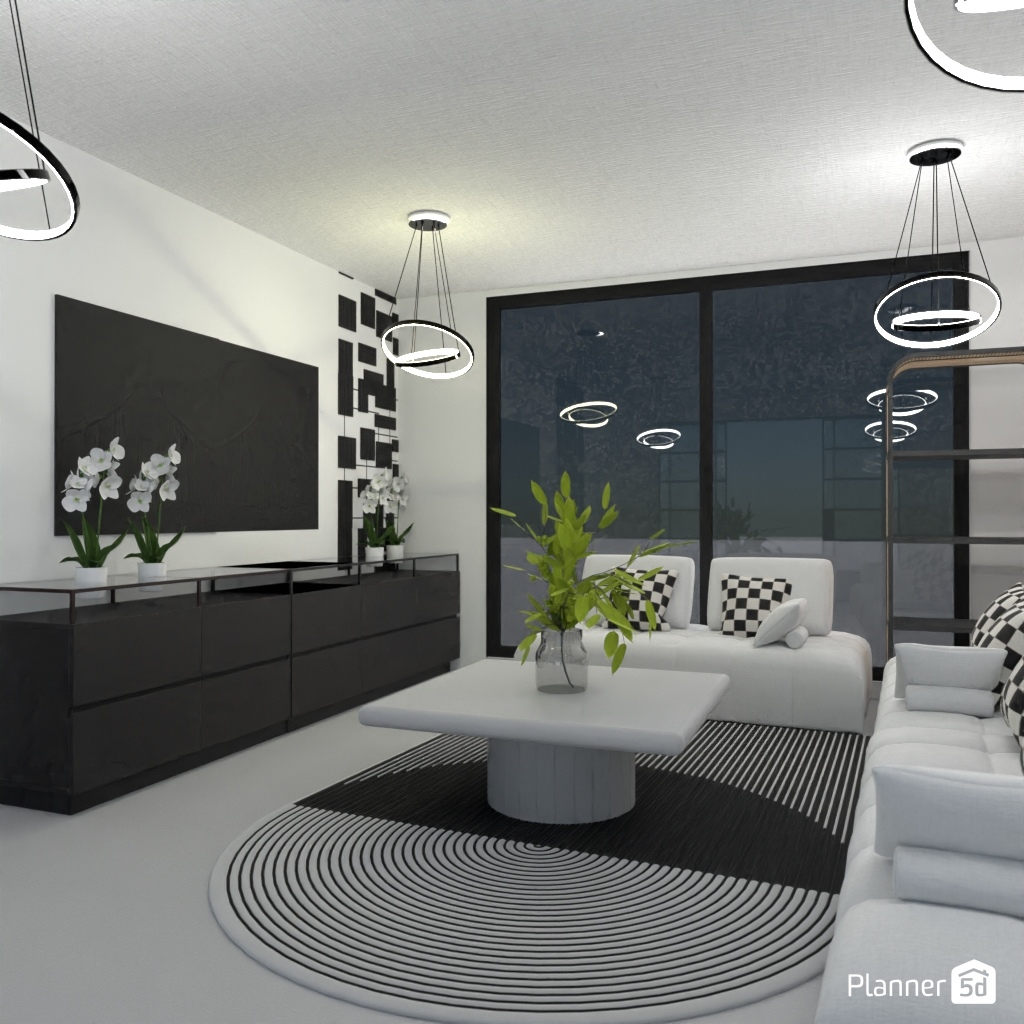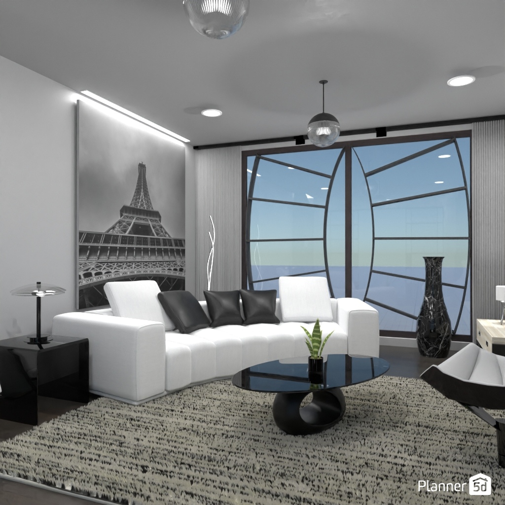 Projete um ambiente com alto contraste usando apenas preto, branco e tons de cinza.