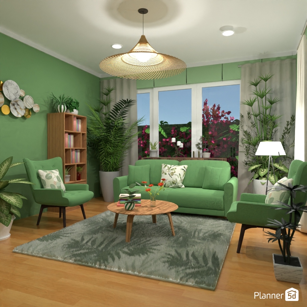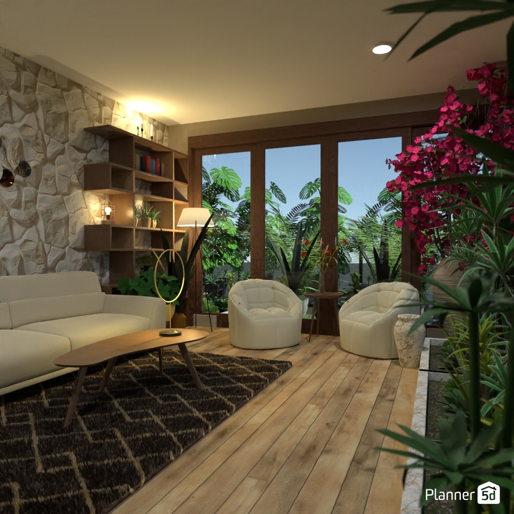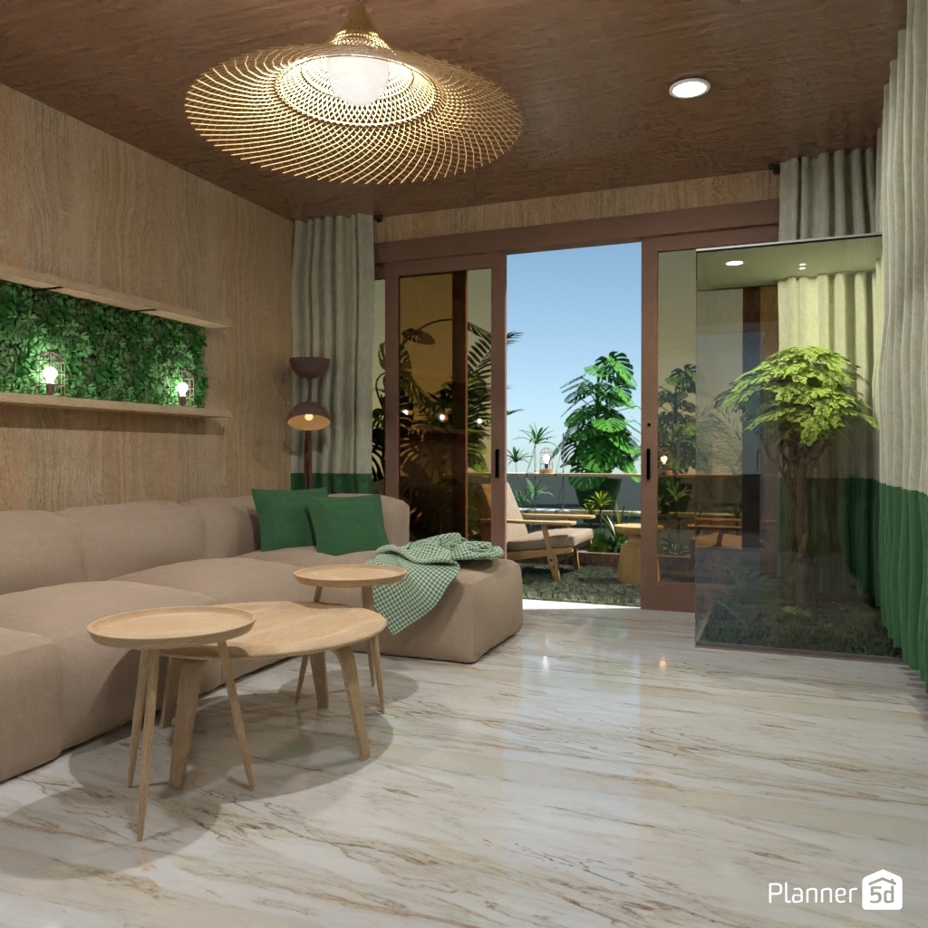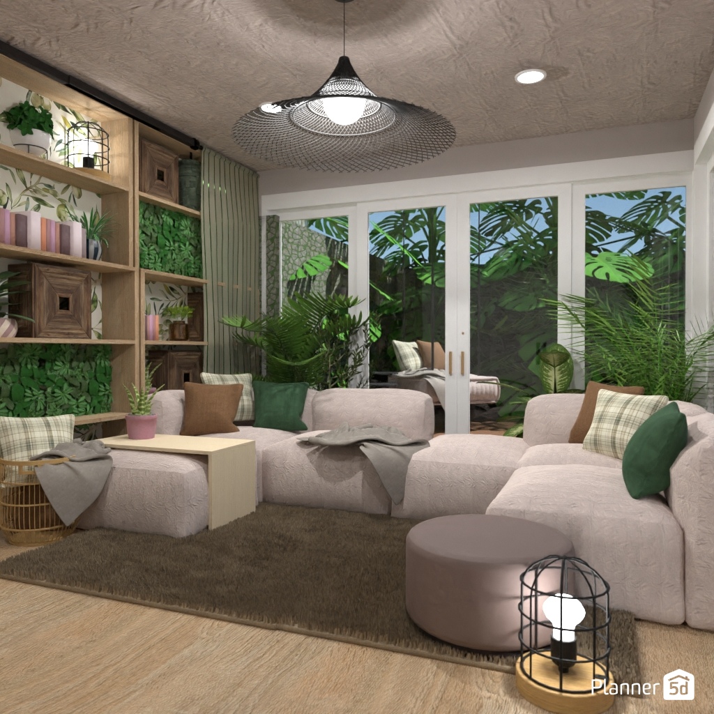 Projete um espaço inspirado na natureza com muito verde e materiais naturais.