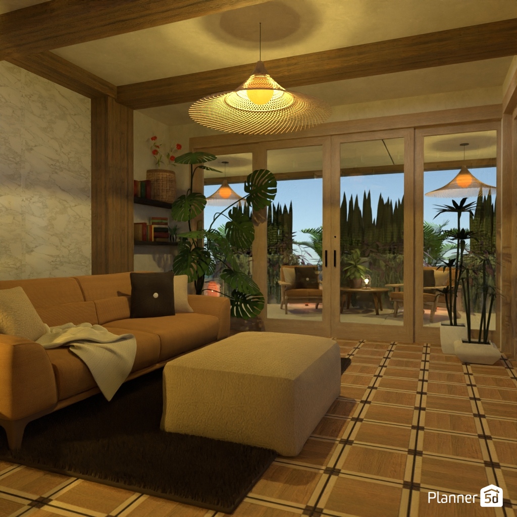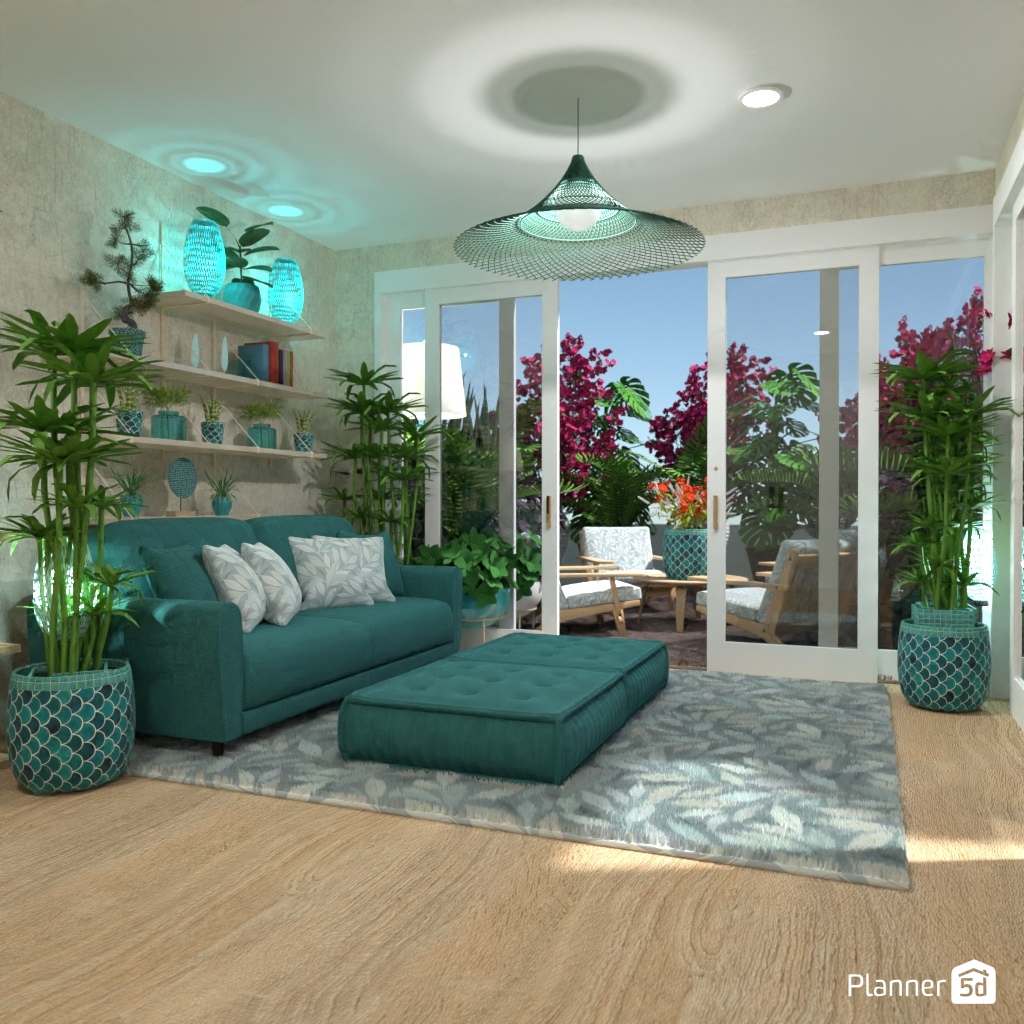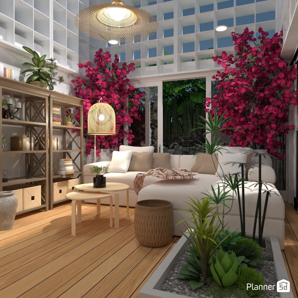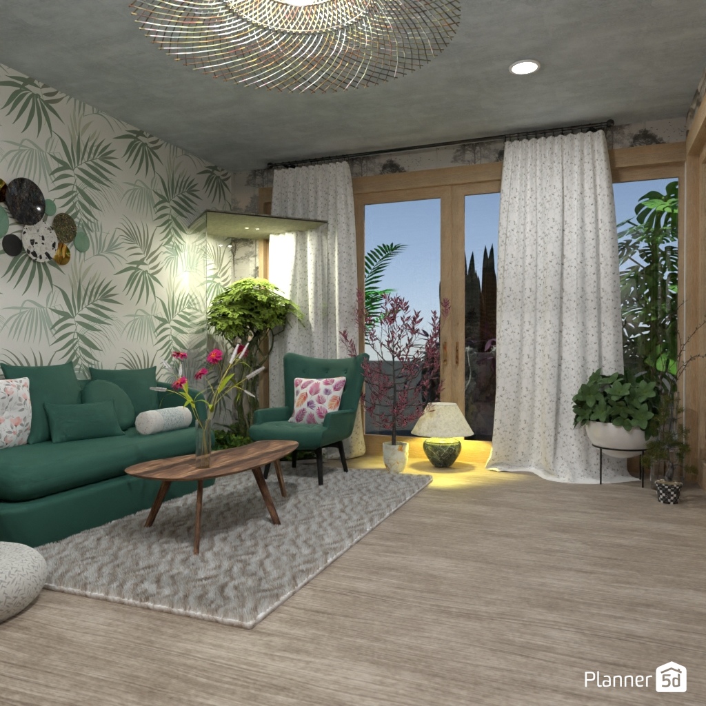 Projete um espaço inspirado na natureza com muito verde e materiais naturais.