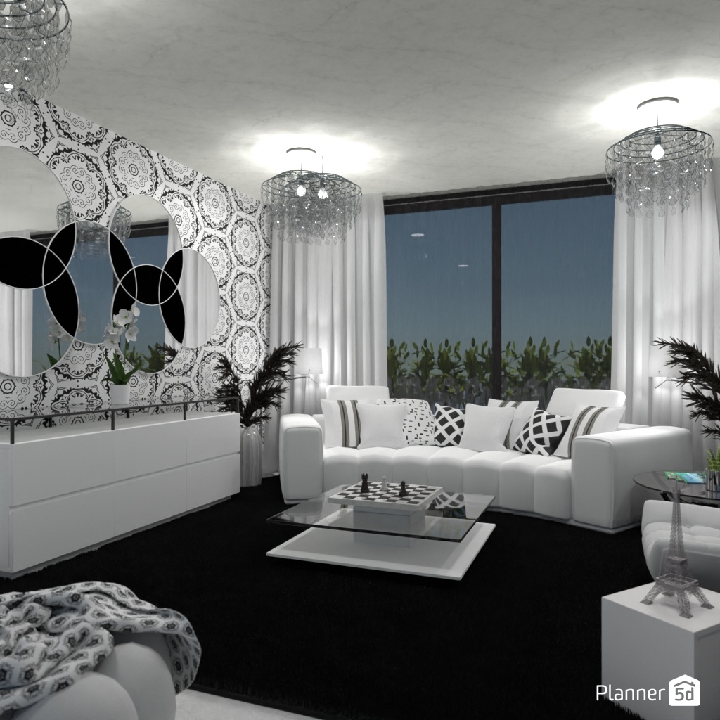 Projete um ambiente com alto contraste usando apenas preto, branco e tons de cinza.