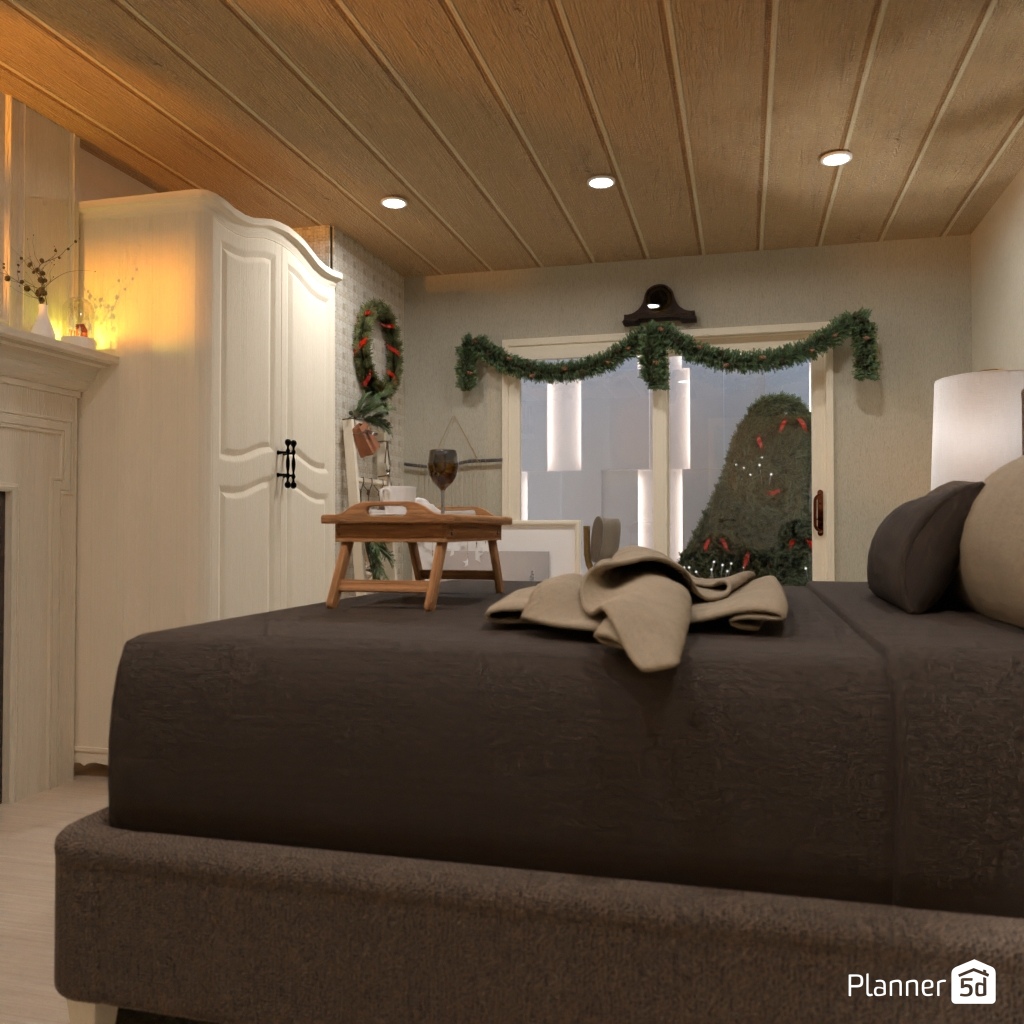 Projete o interior de um quarto que esteja associado ao inverno.