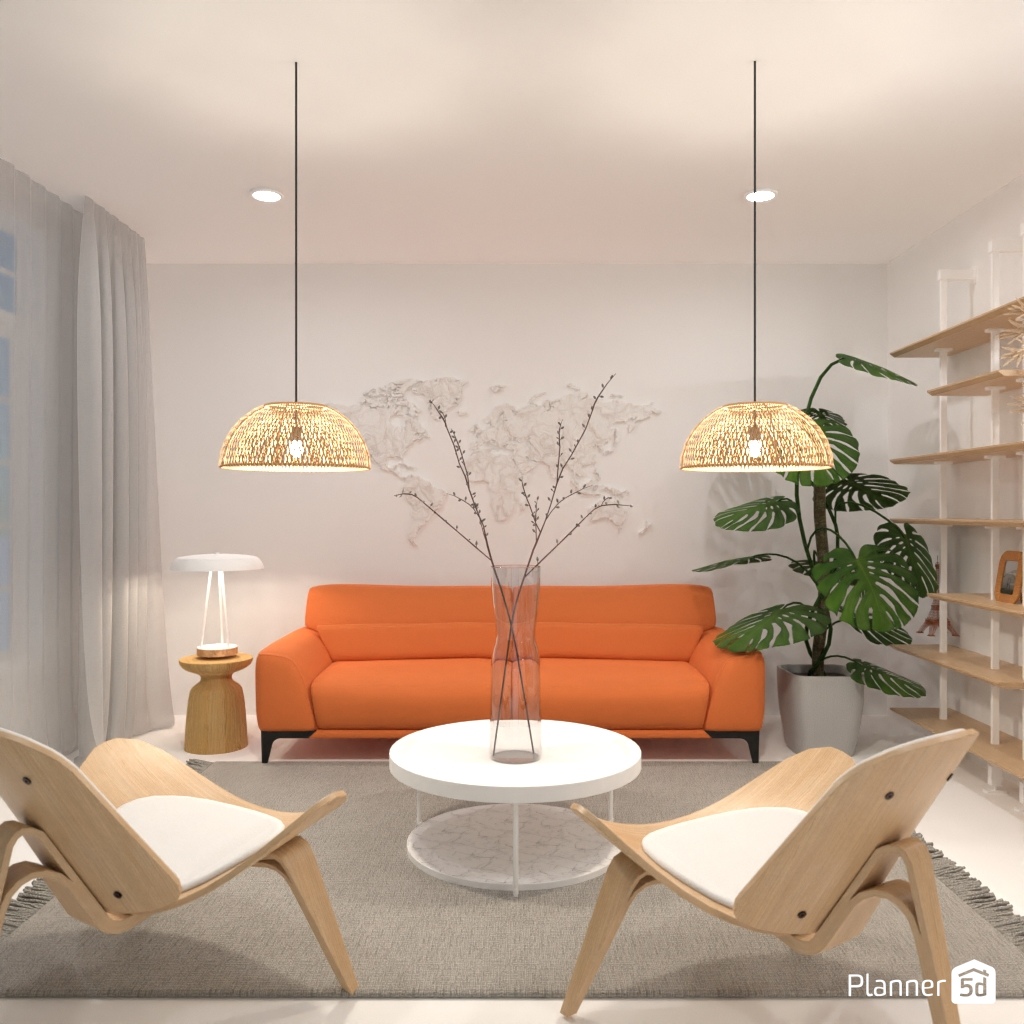 Desenhe seu interior ao redor de um sofá laranja.