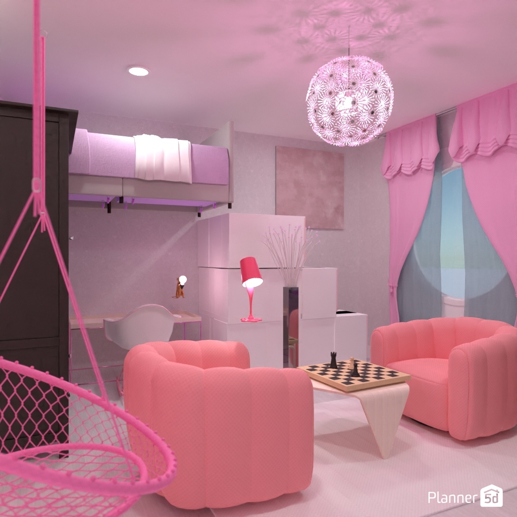 Projete um interior de quarto infantil em cores pastel.