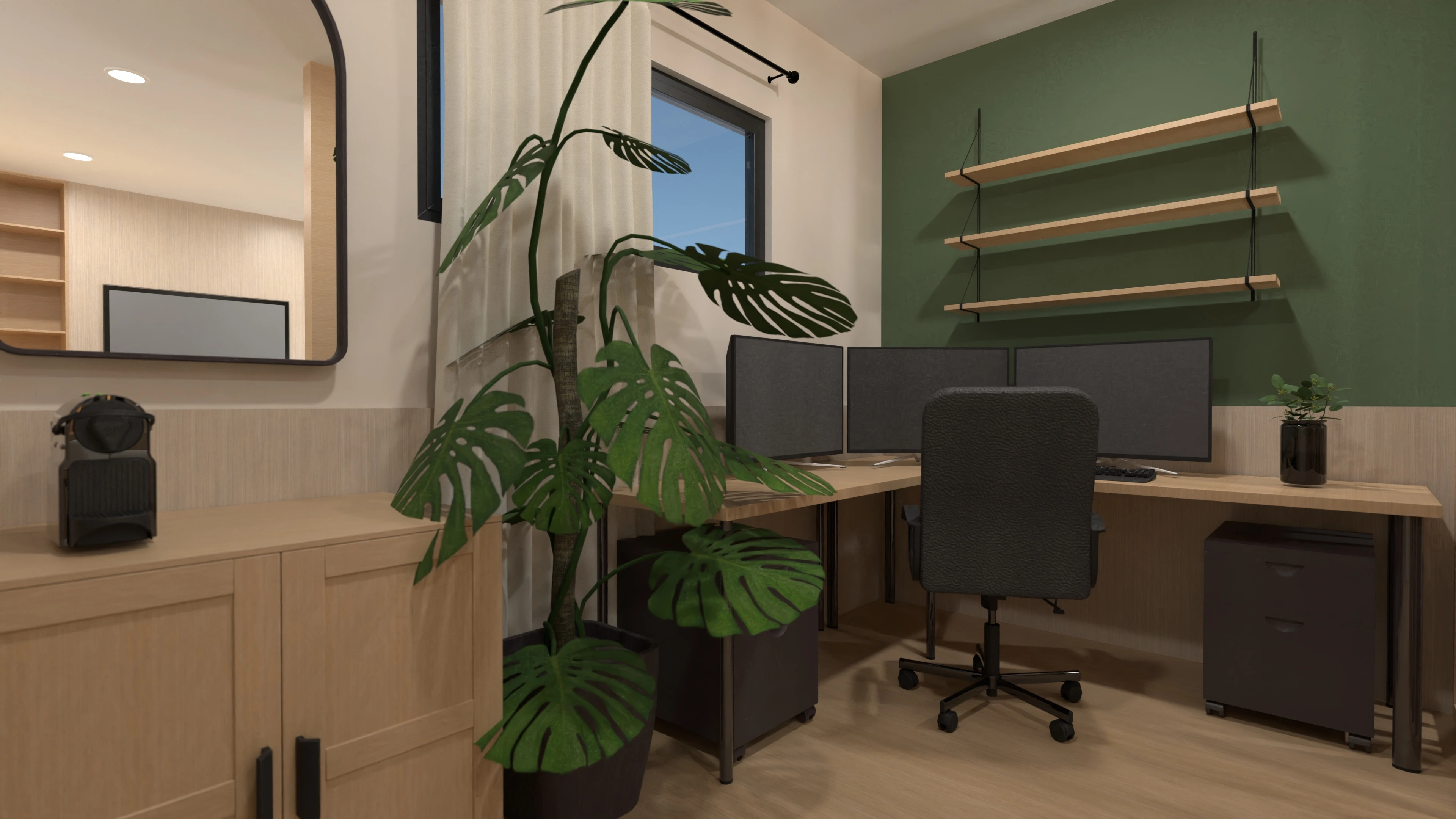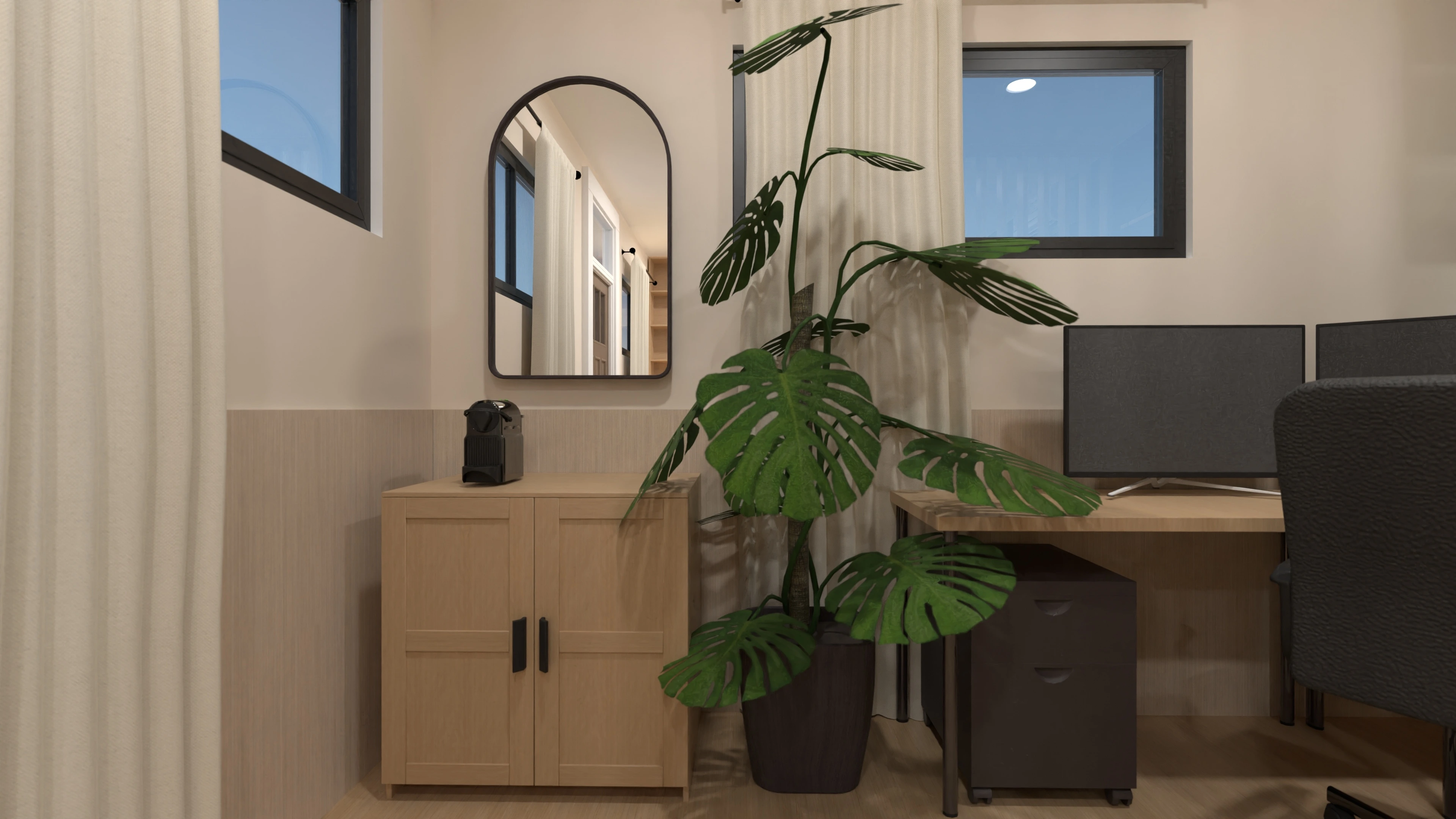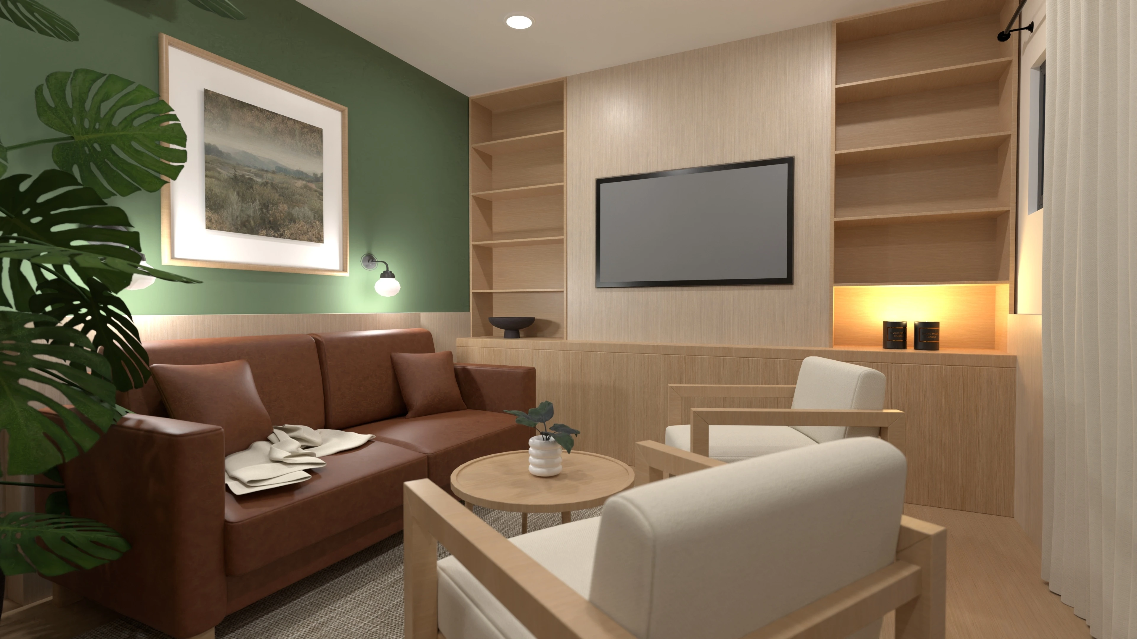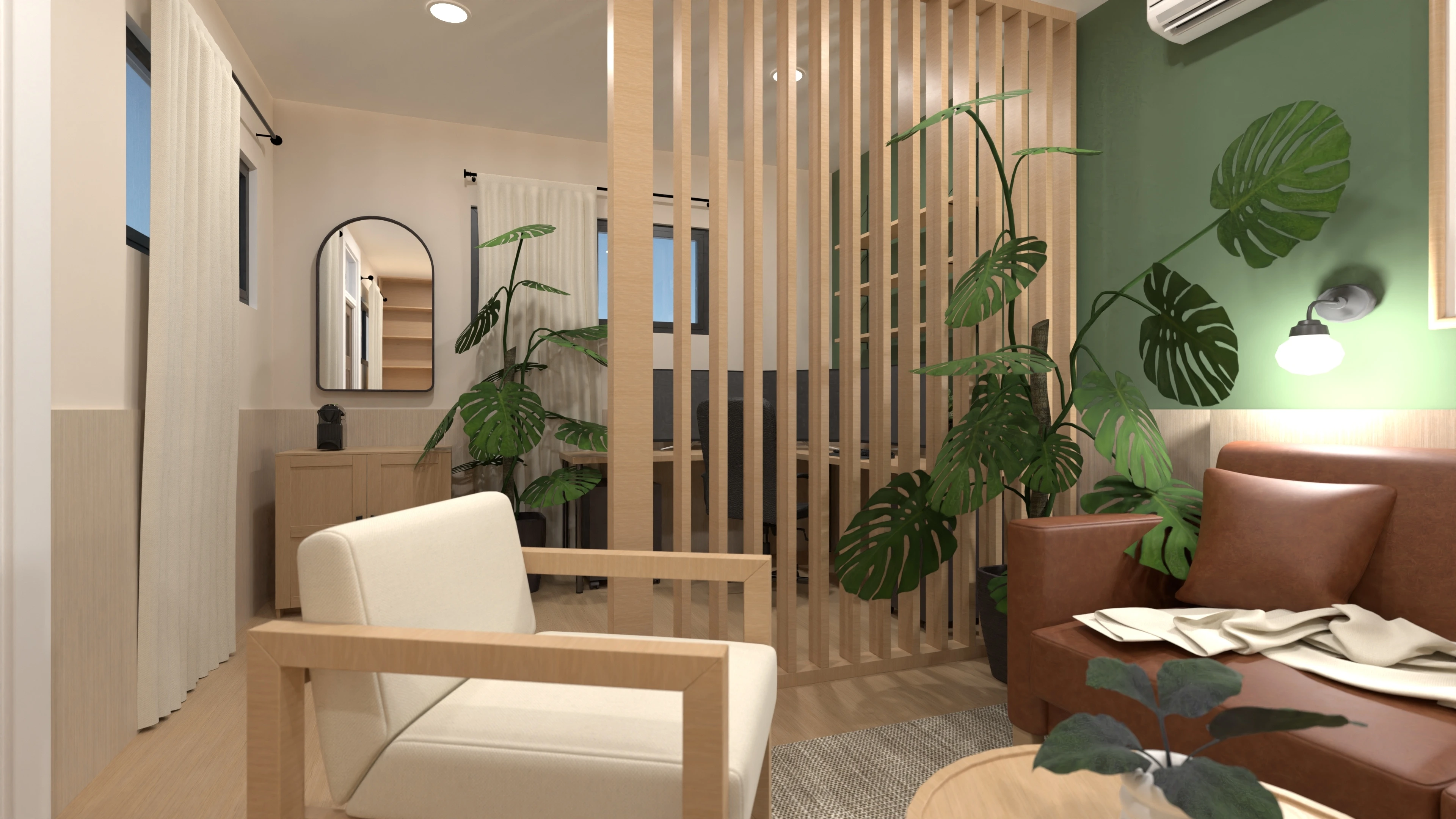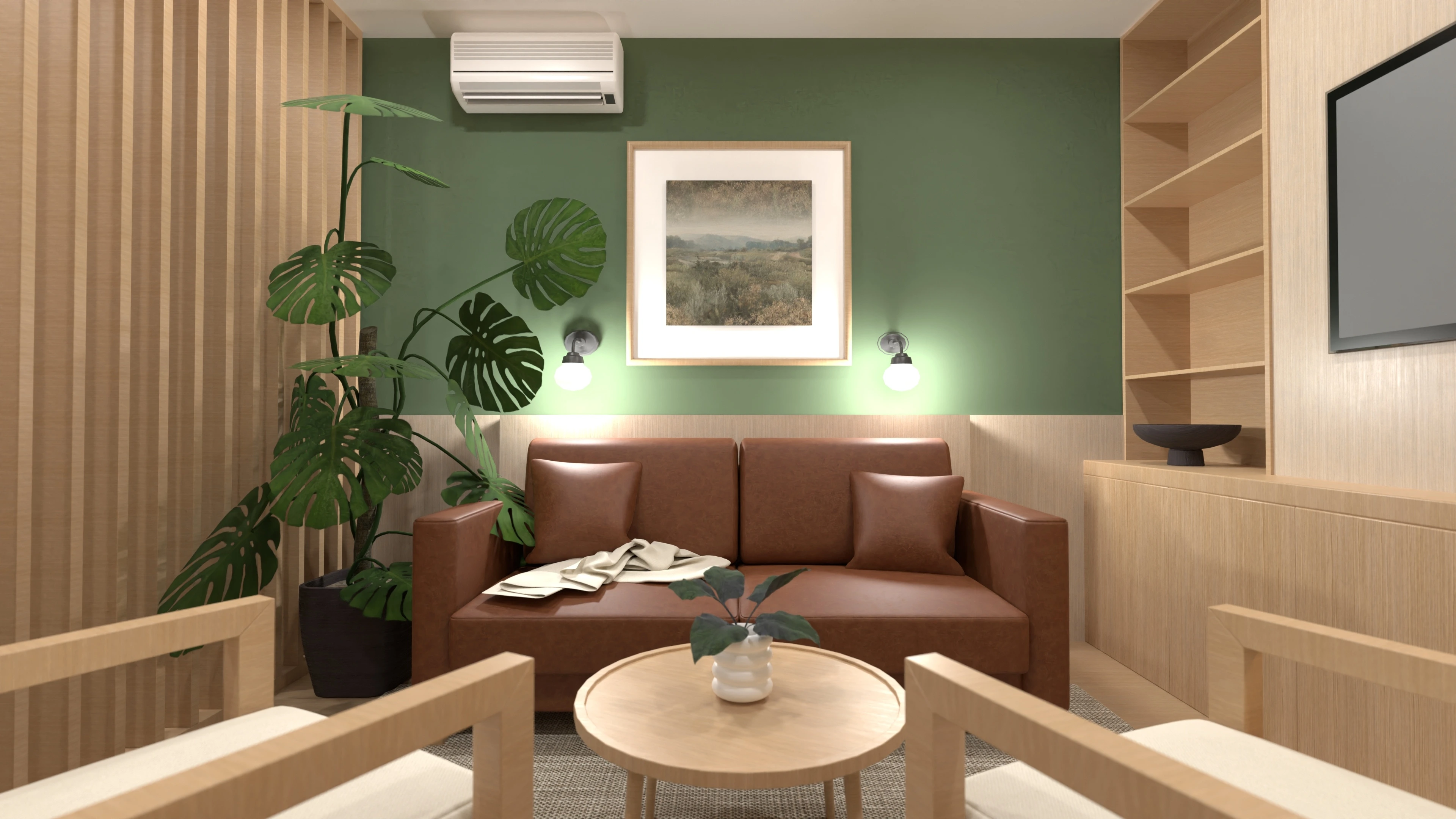 An earthy color palette and the use of natural materials create a cozy and inviting space.