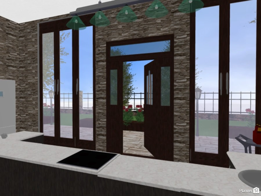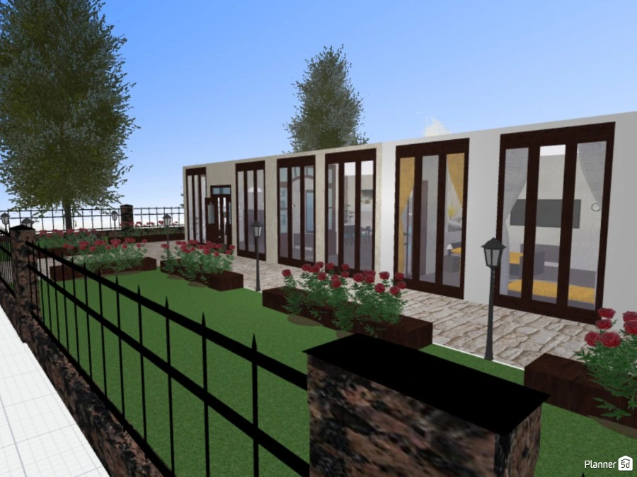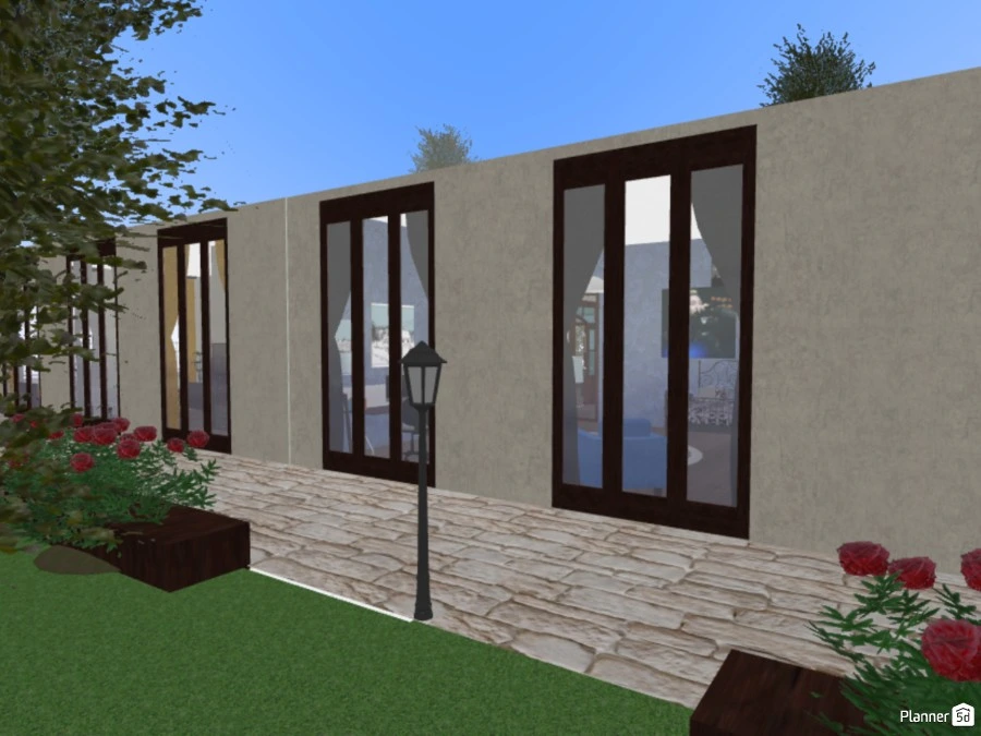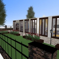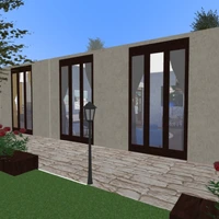 one master bedroom, one child's bedroom, one guest room library/office + small restroom three bathrooms kitchen merged with living space outdoor pool + barbecue /leisure space first proper attempt :)