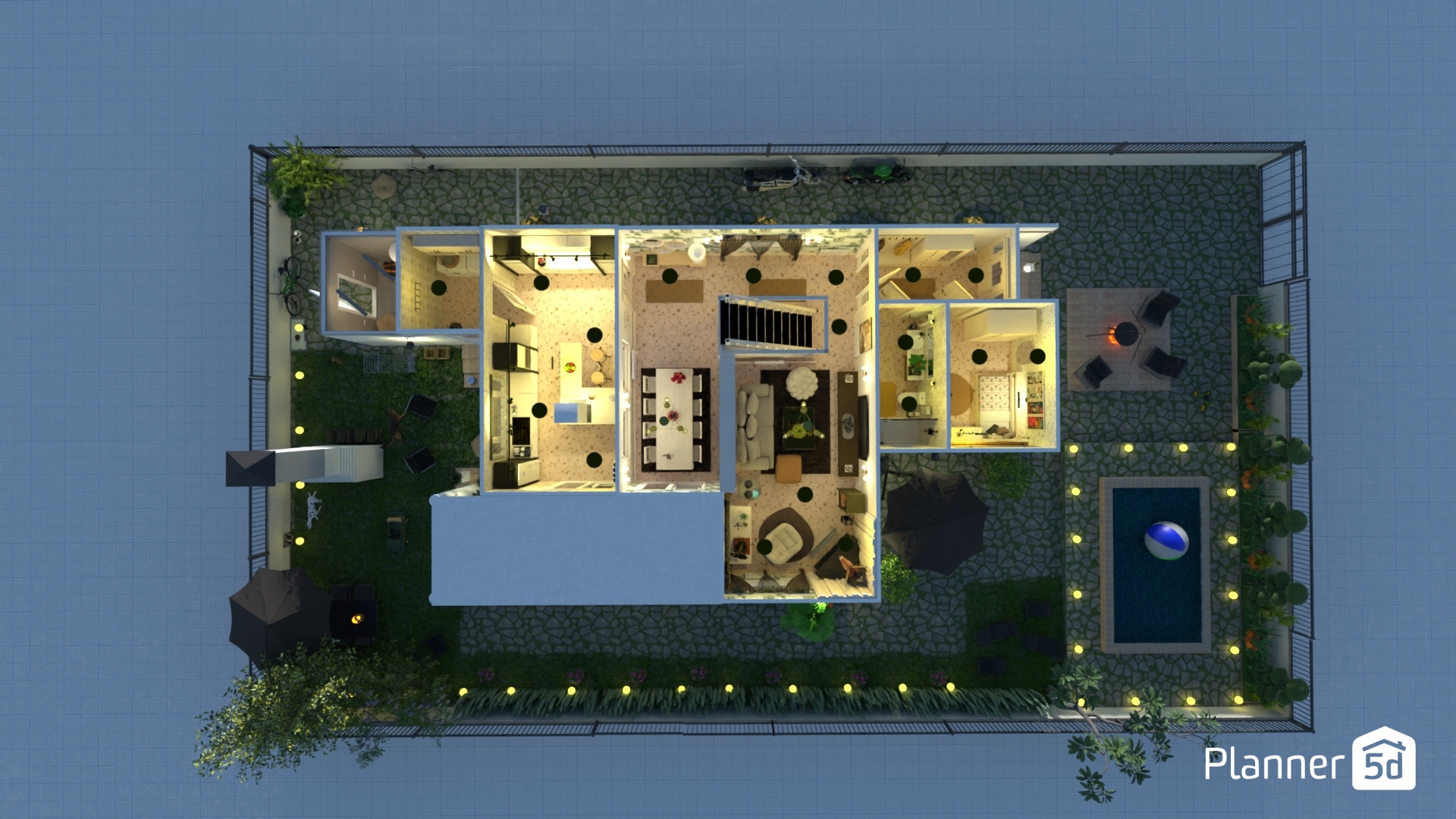 primera planta con baño, habitación galería y un comedor cocina salón donde las paredes no existen