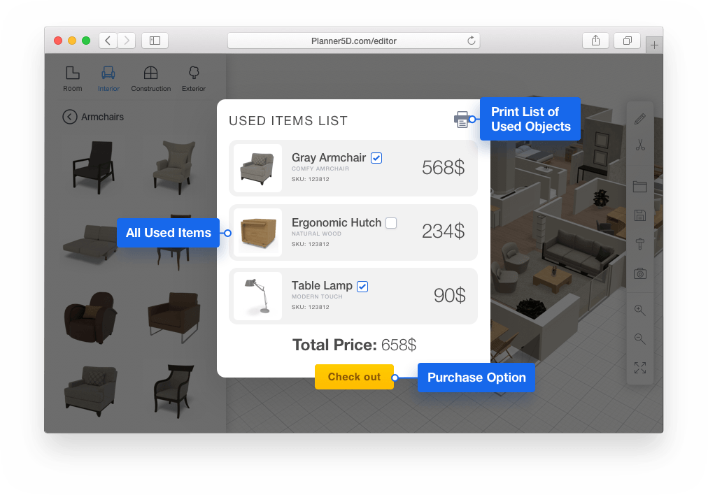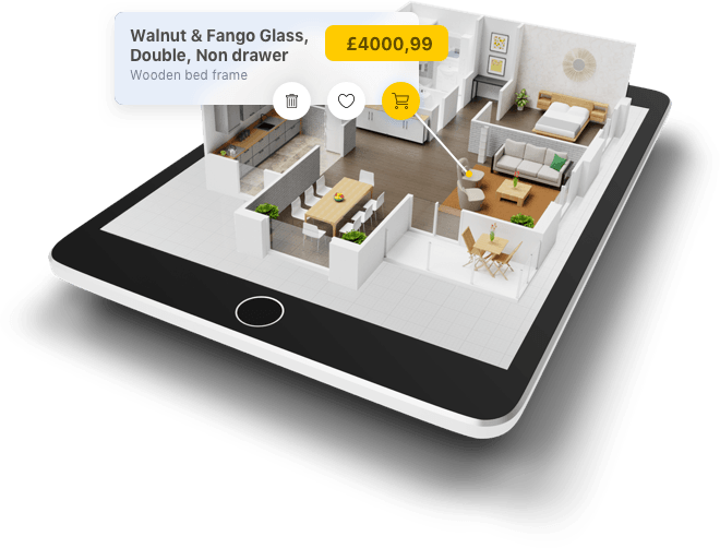 Платформа синхронизируется с вашим интернет-магазином, что дает покупателям возможность покупать товары прямо из планировщика или дополненной реальности.