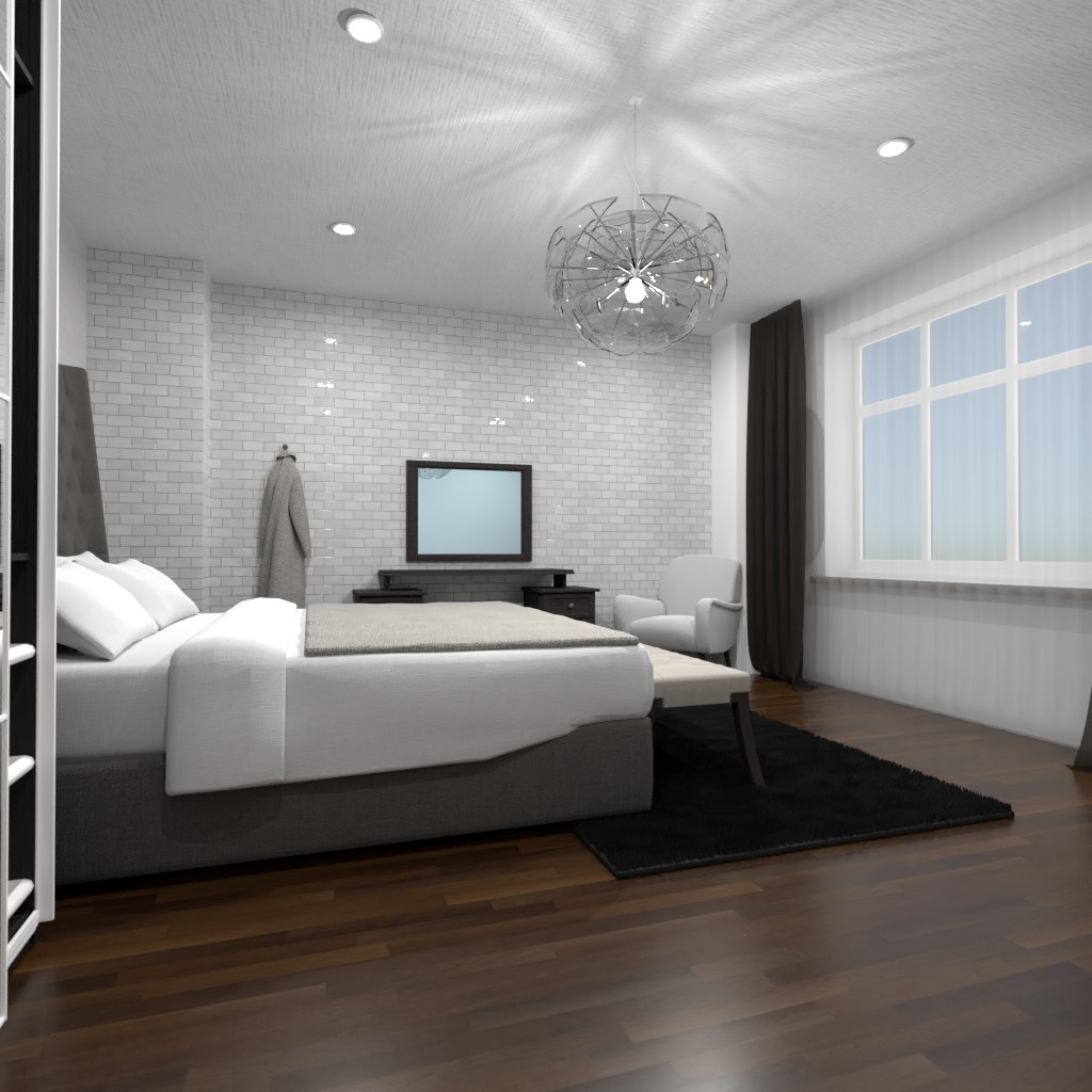 Создайте дизайн интерьера спальни, используя два контрастных цвета.