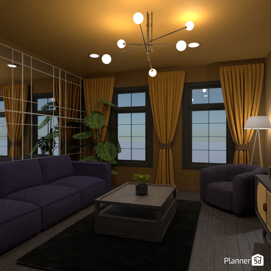 Спроектируй гостиную с зеркальной акцентной стеной.