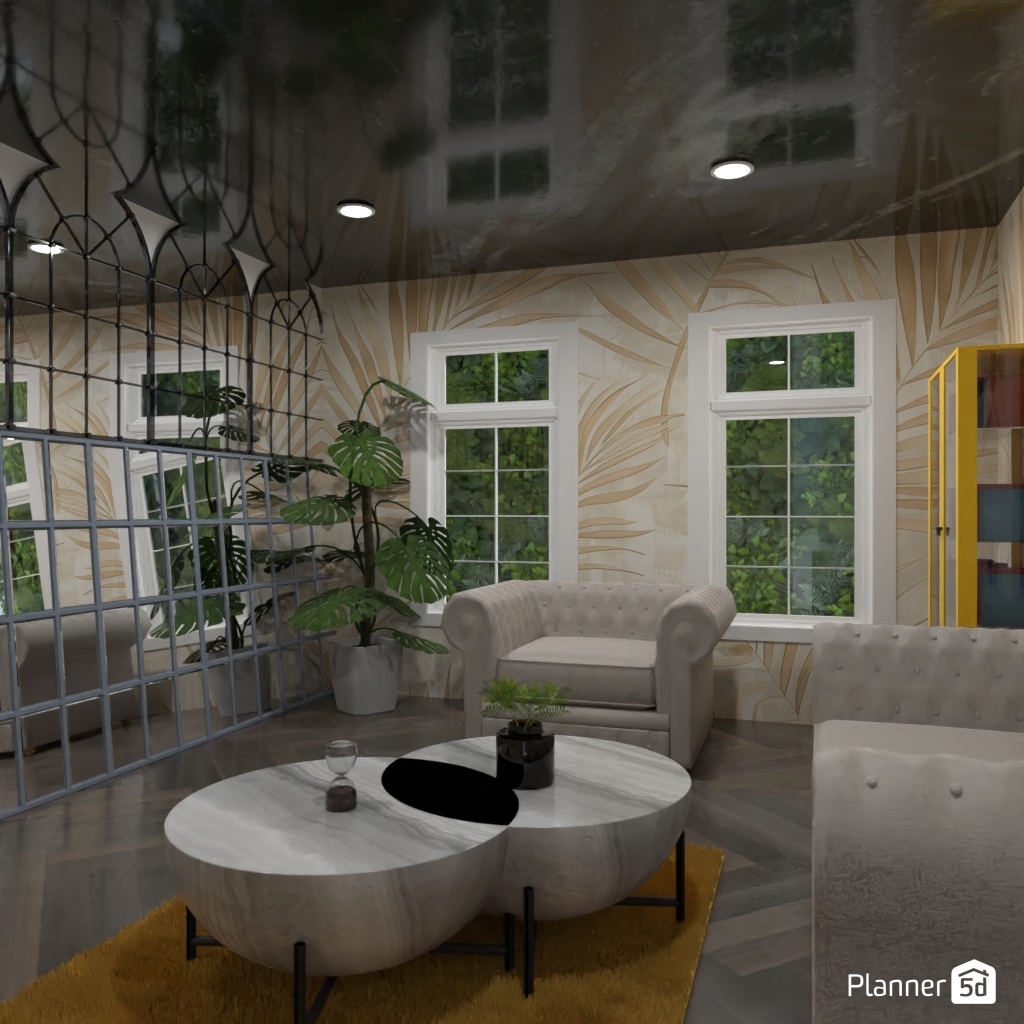 Спроектируй гостиную с зеркальной акцентной стеной.