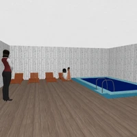 комната с бассейном и людьми