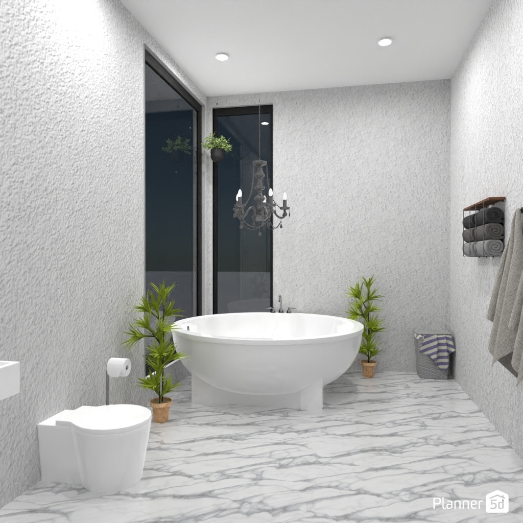 Skapa ett badrum med naturliga material som trä, sten, växter.