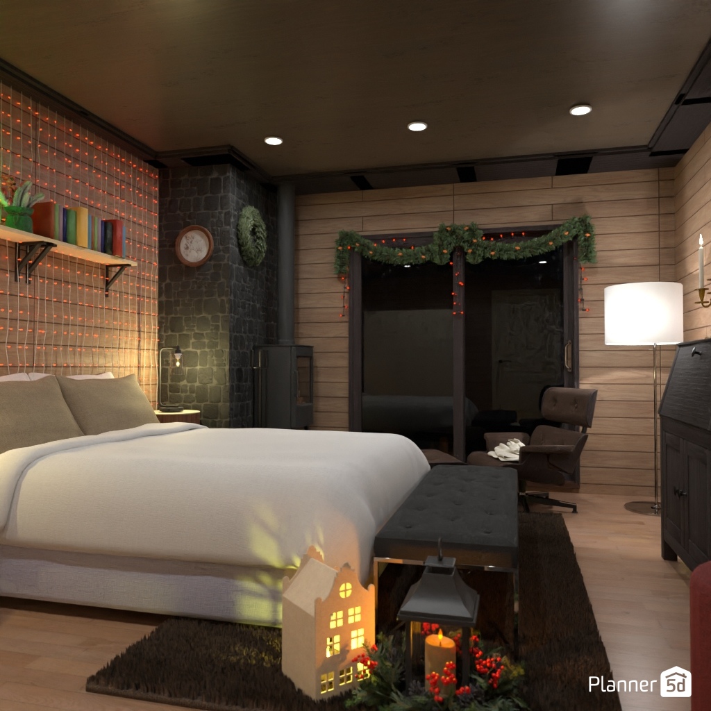 Skapa ett sovrumsinteriör som associeras med vinter.