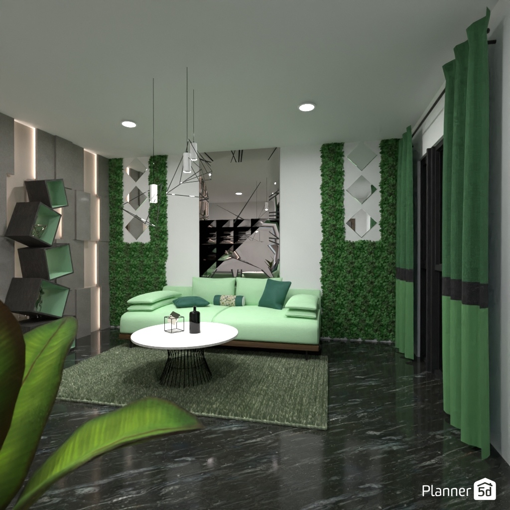 Designa interiören i ett vardagsrum med olika geometriska former.