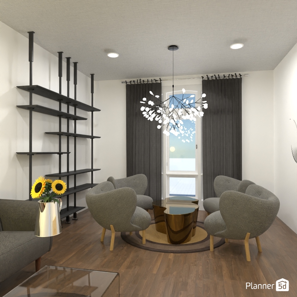 Designa en ljus vardagsrumsinteriör med gröngula accenter.