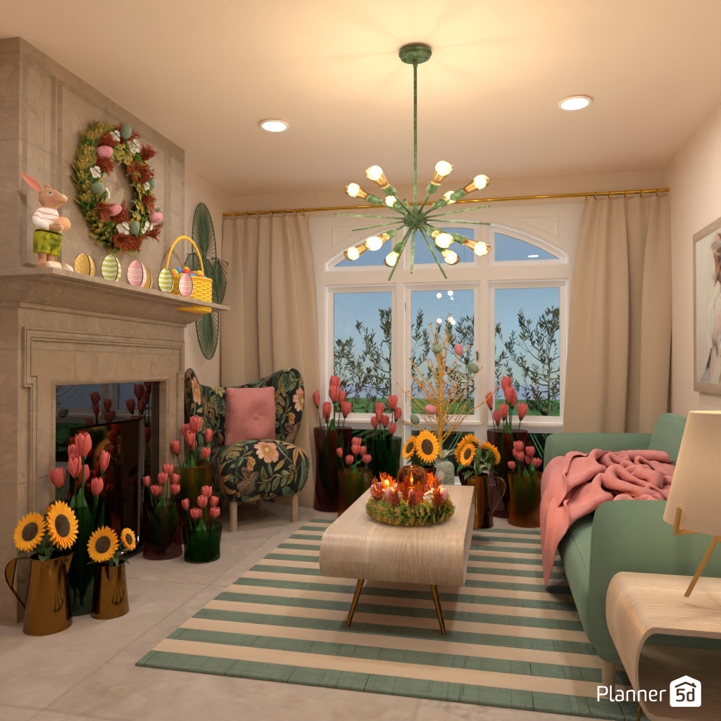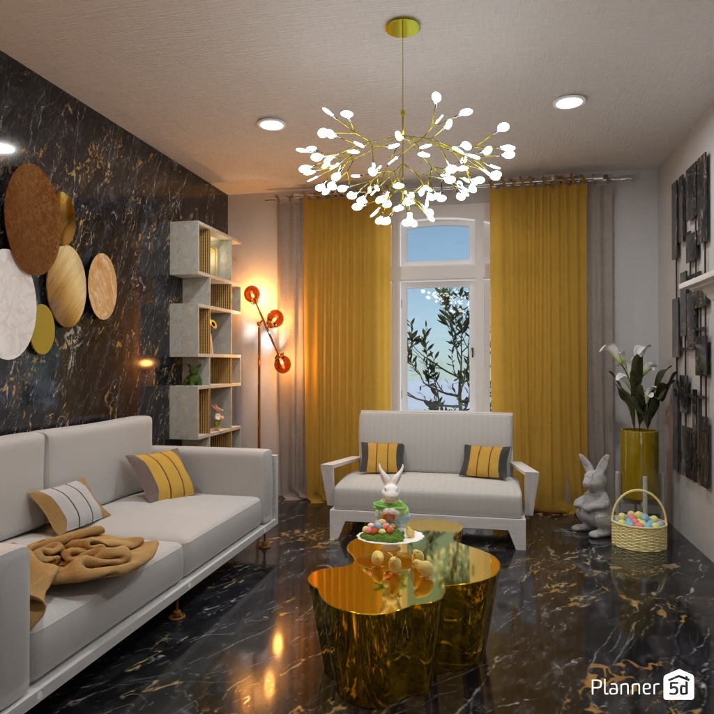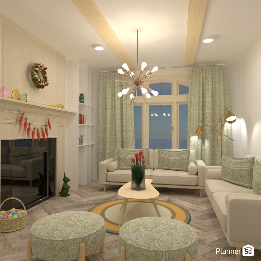设计一个带有绿黄色调的明亮客厅内饰。