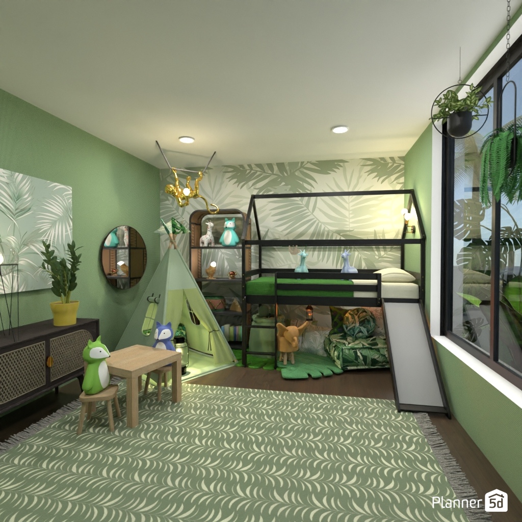 创建一个充满活力的丛林主题冒险卧室。