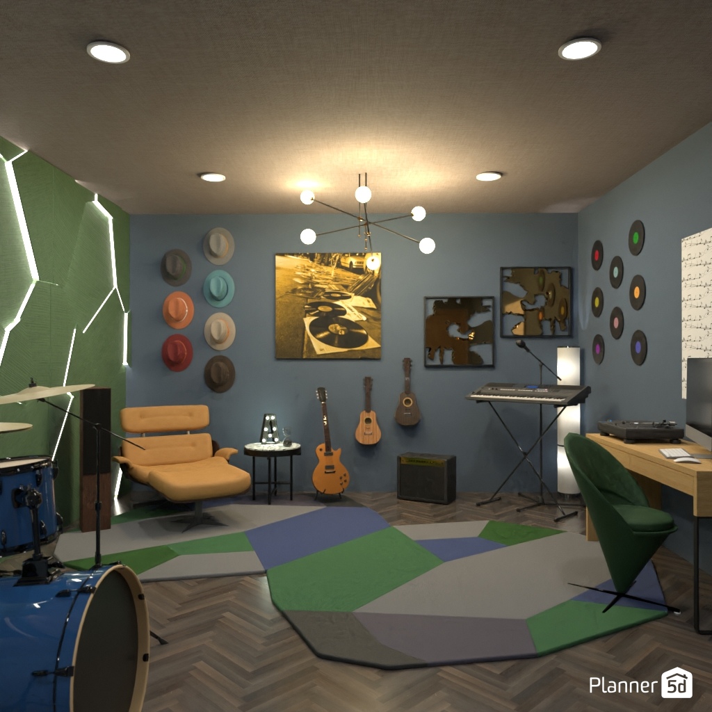 为音乐爱好者打造一个带有乐器和装饰的梦想房间。