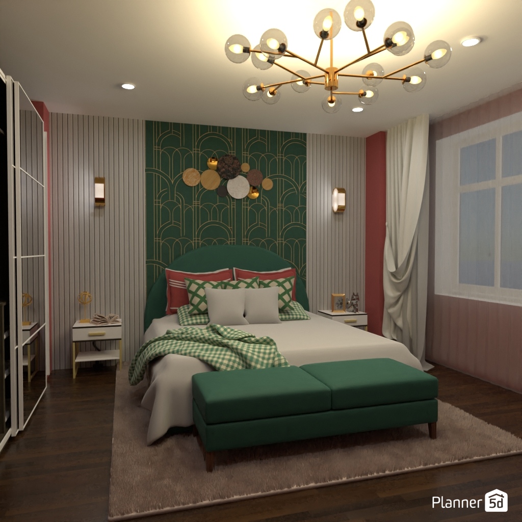 选择两种对比色,用它们设计卧室的内部装饰.
