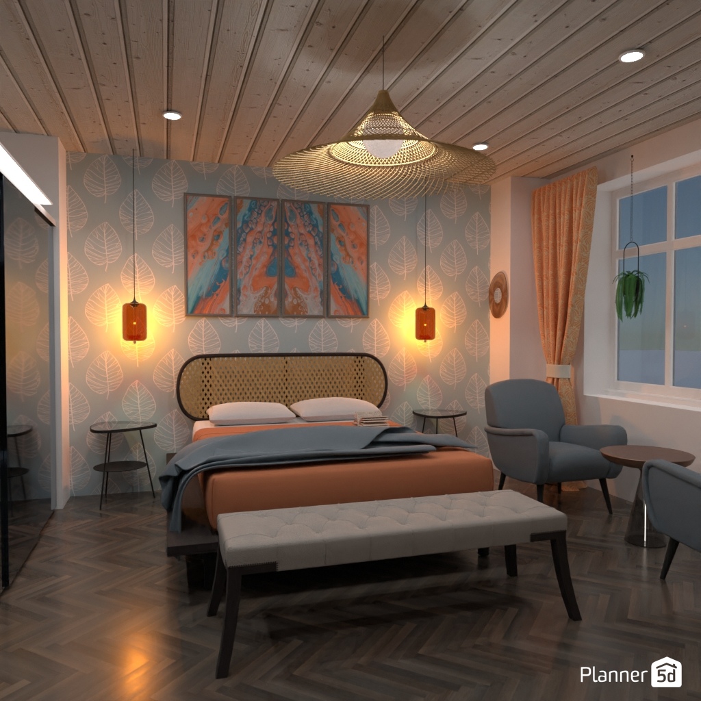 选择两种对比色,用它们设计卧室的内部装饰.