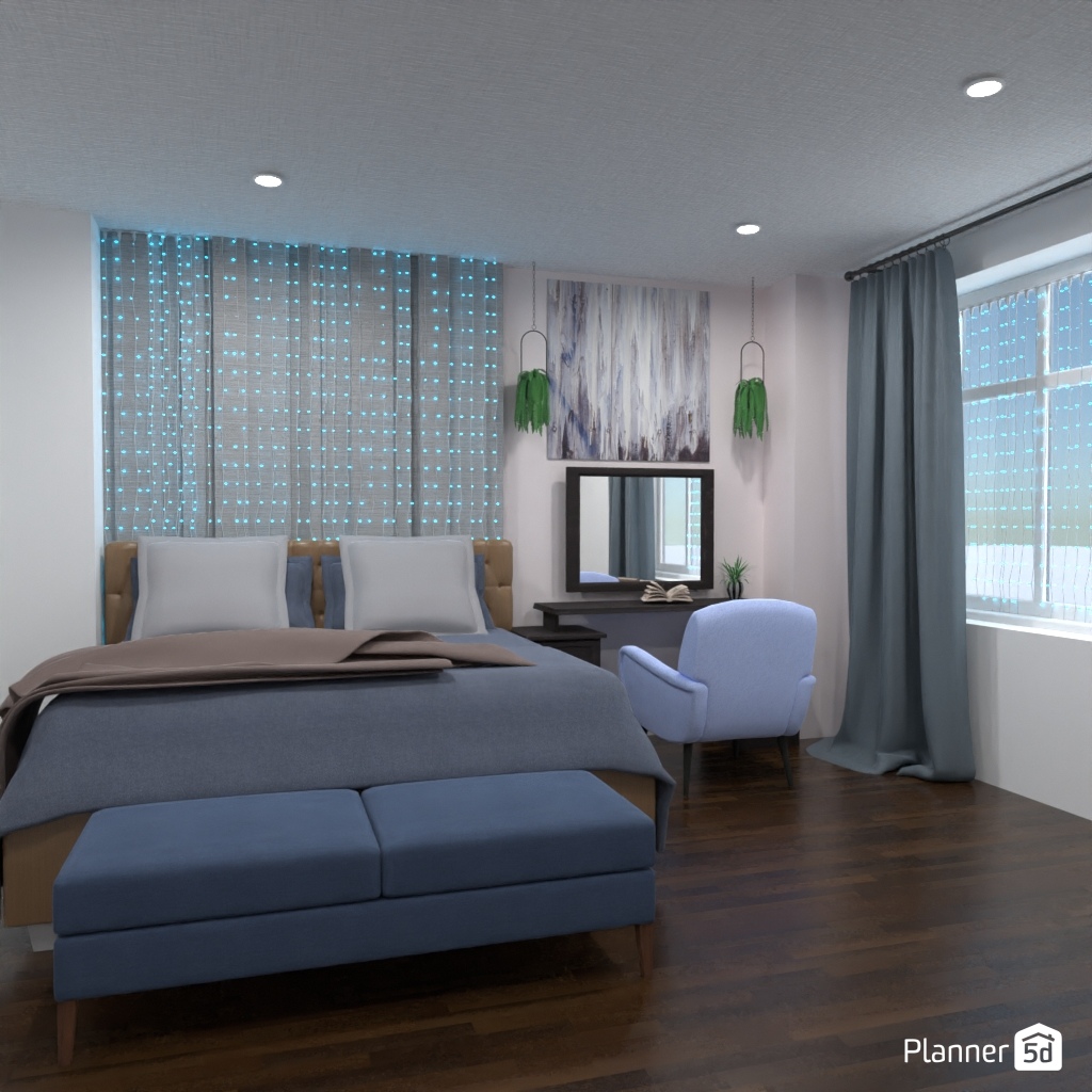 选择两种对比色,用它们设计卧室的内部装饰.