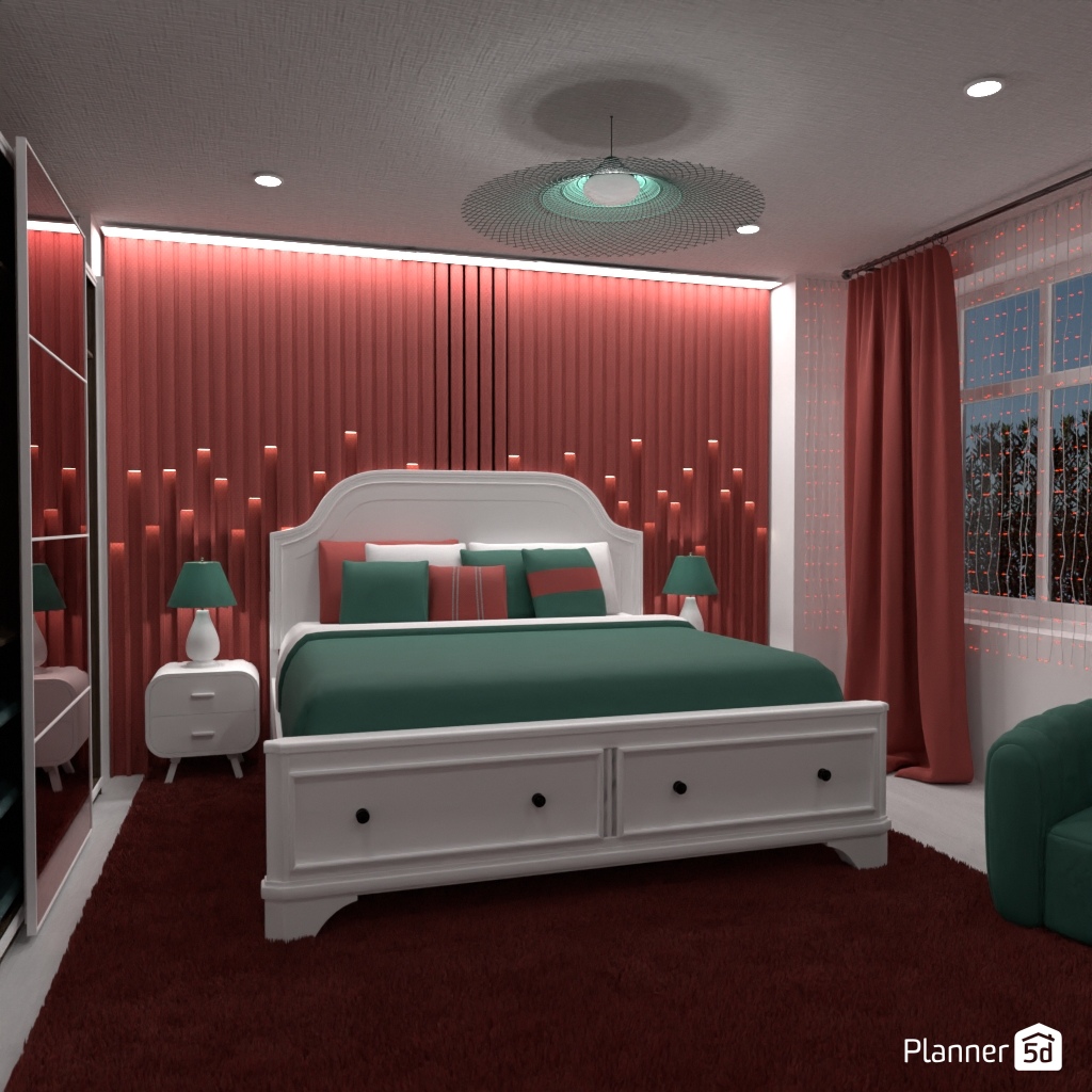 选择两种对比色,用它们设计卧室的内部装饰.