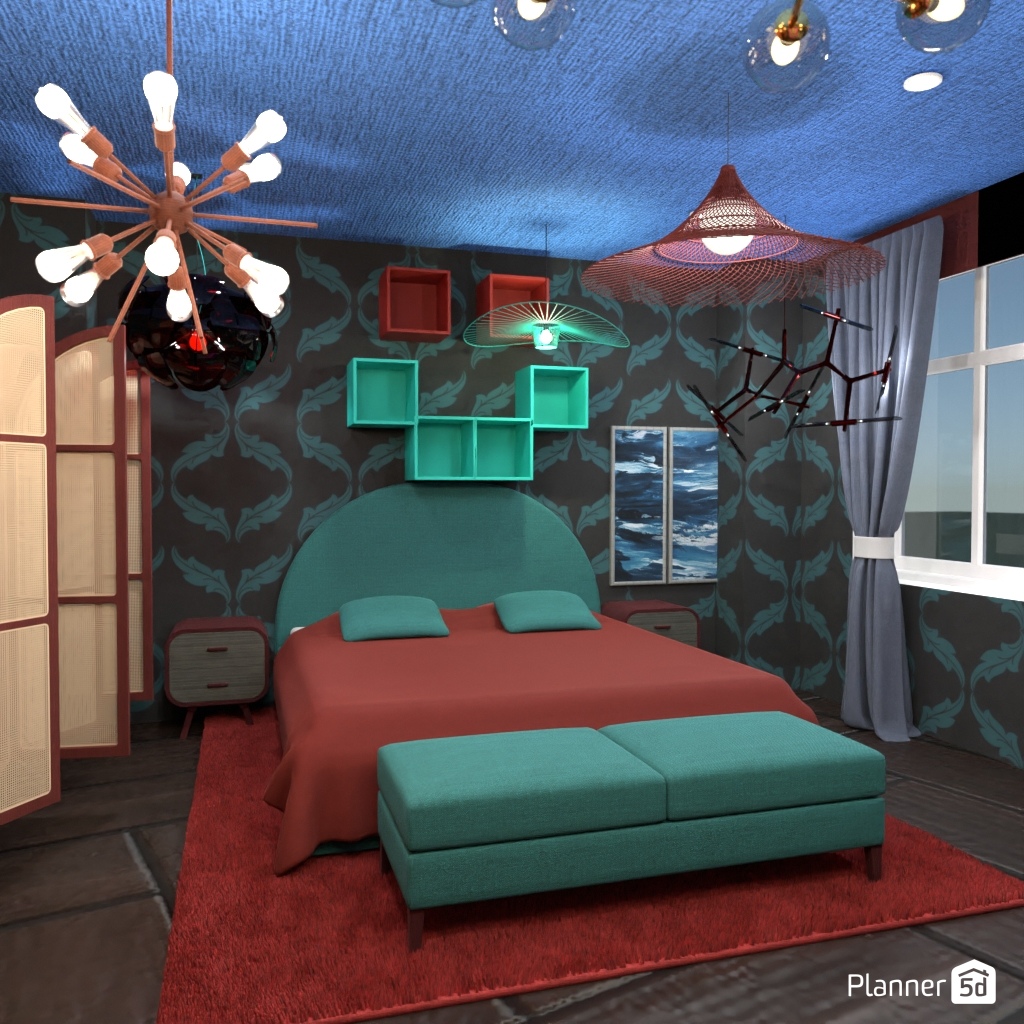 选择两种对比色,用它们设计卧室的内部装饰.