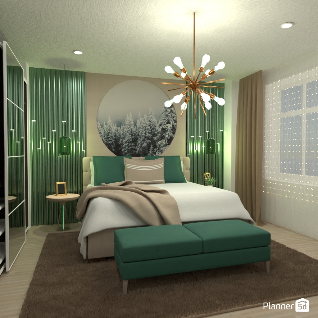 选择两种对比色,用它们设计卧室的内部装饰.