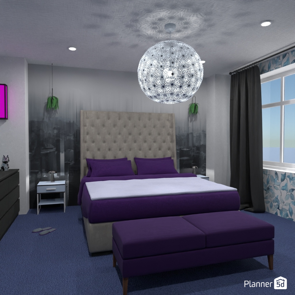 选择两种对比色,用它们设计卧室的内部装饰.