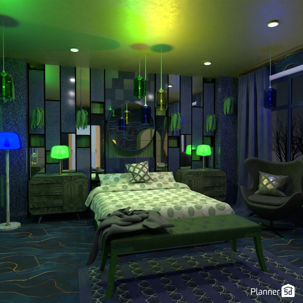 选择两种对比色,用它们设计卧室的内部装饰.