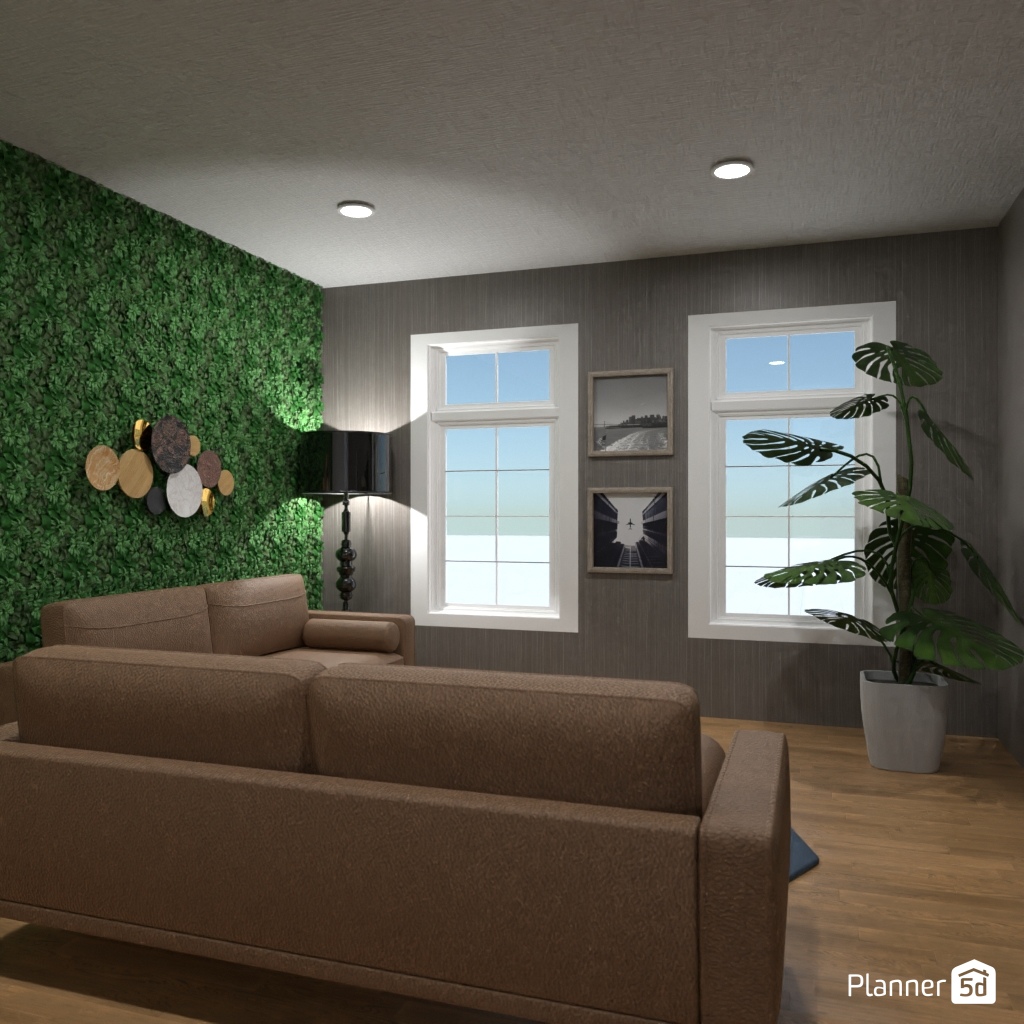 设计一个带有镜面墙装饰的客厅。